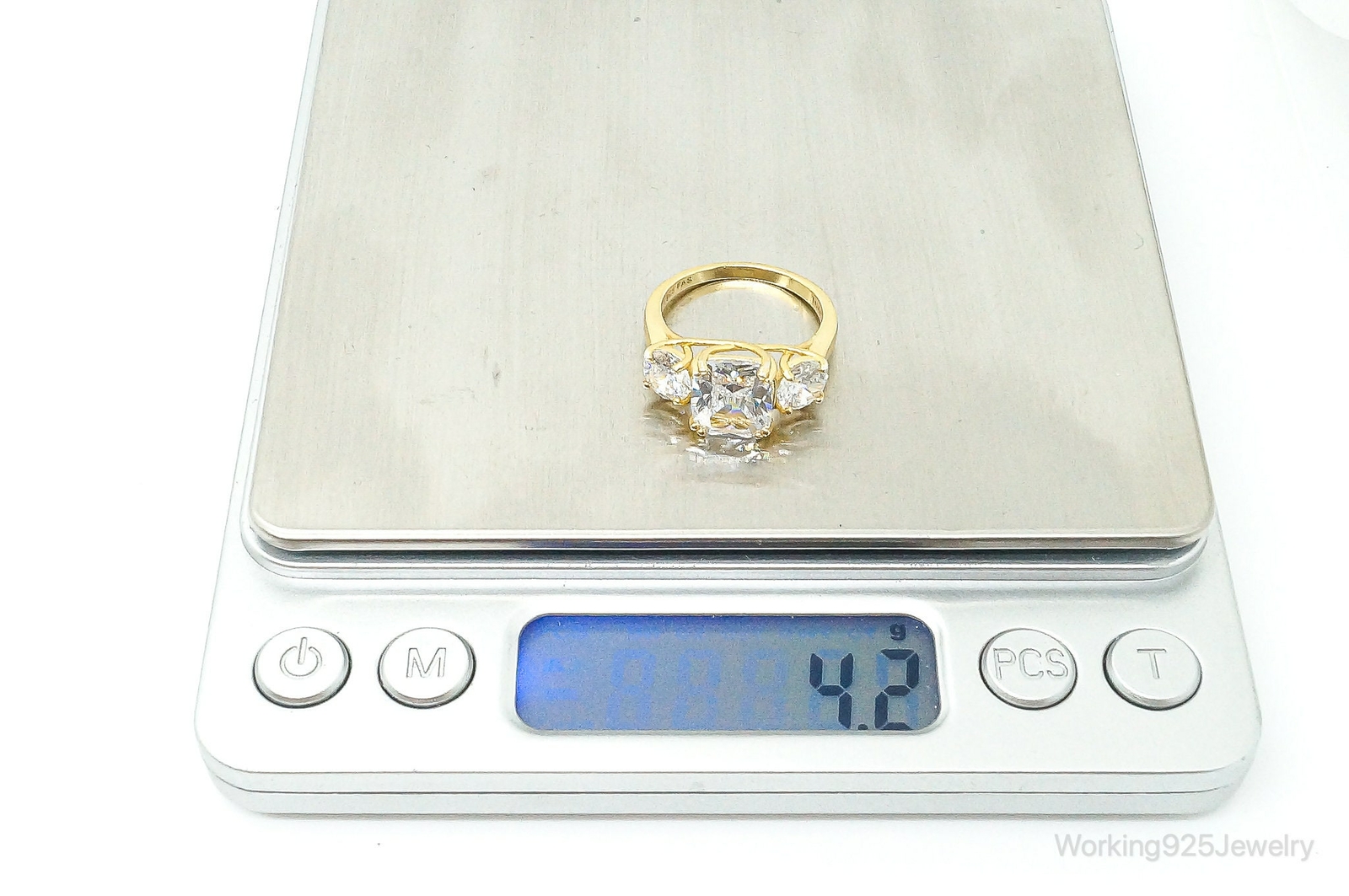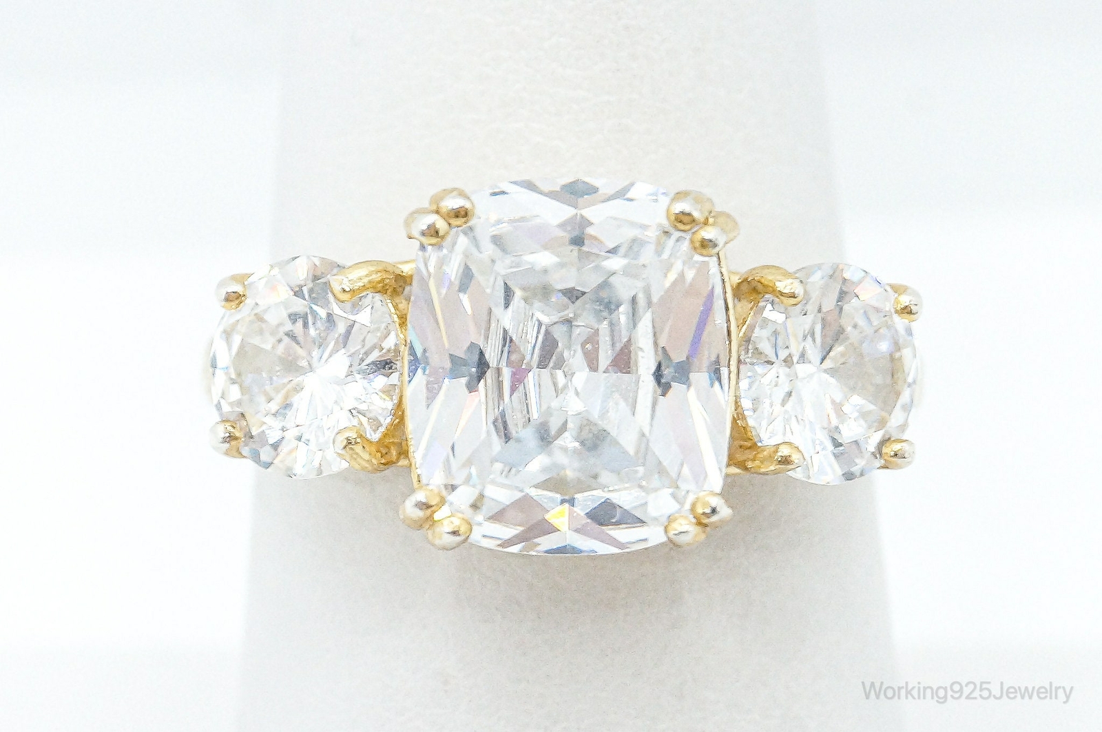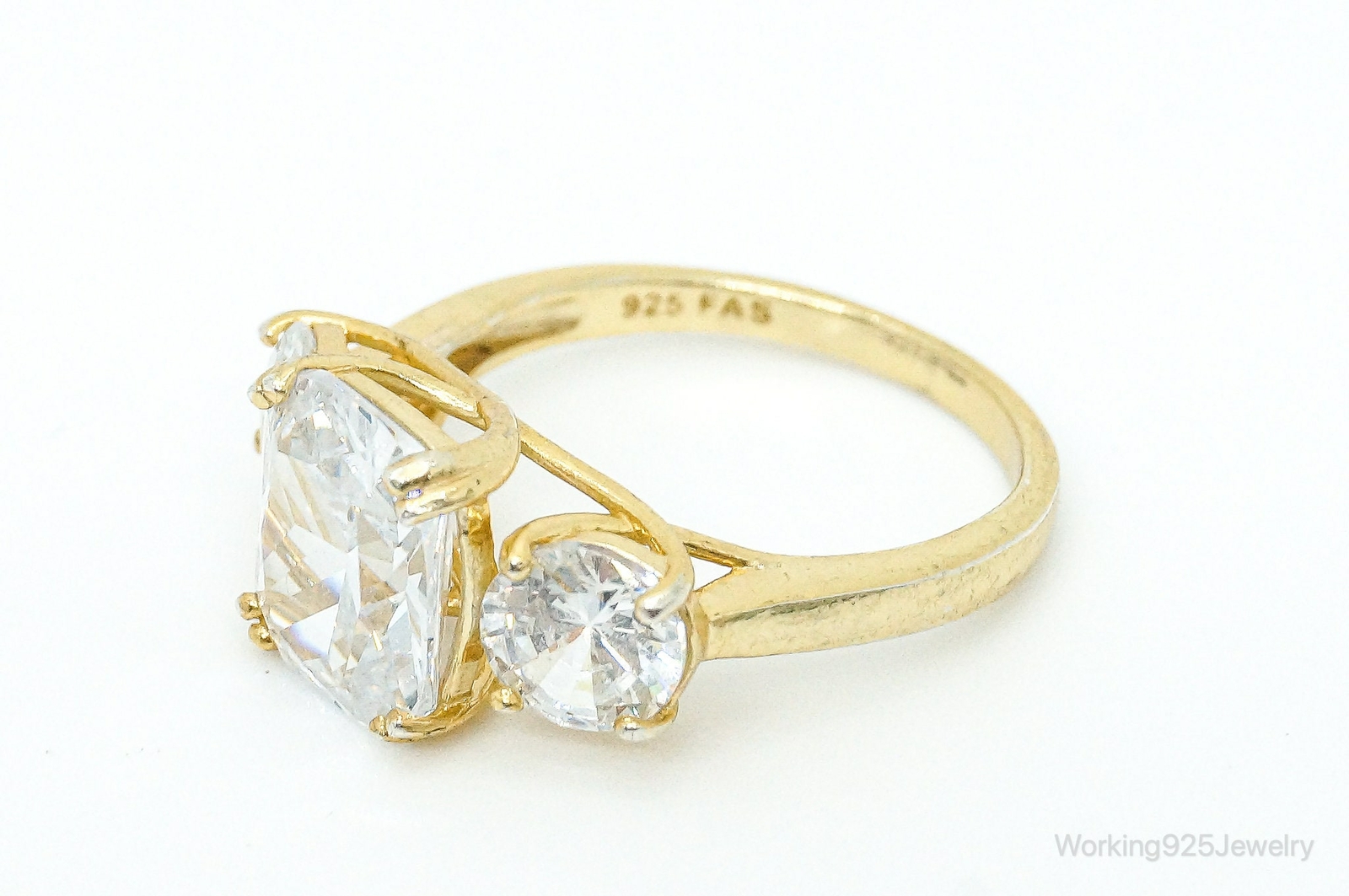 Designer FAS Gold Vermeil Cubic Zirconia Sterling Silver Ring - Size 7