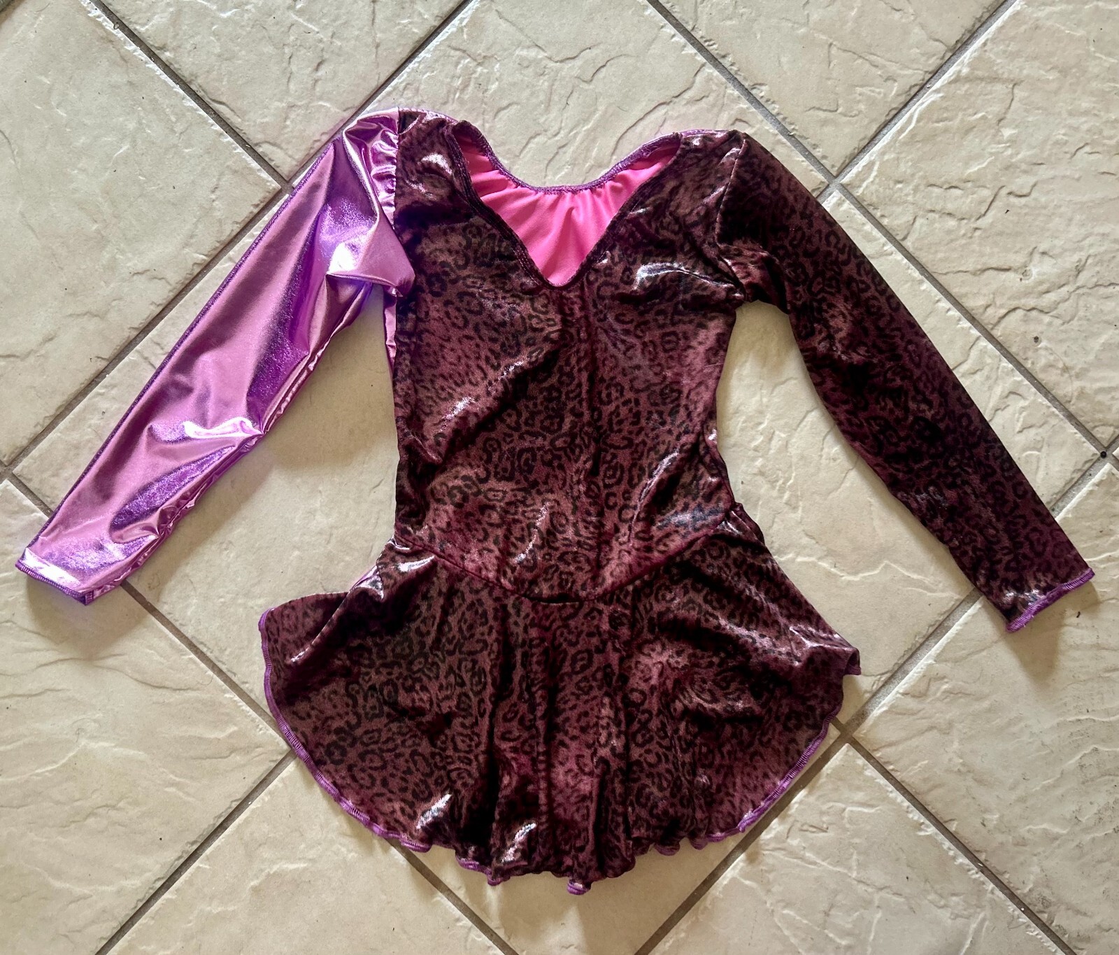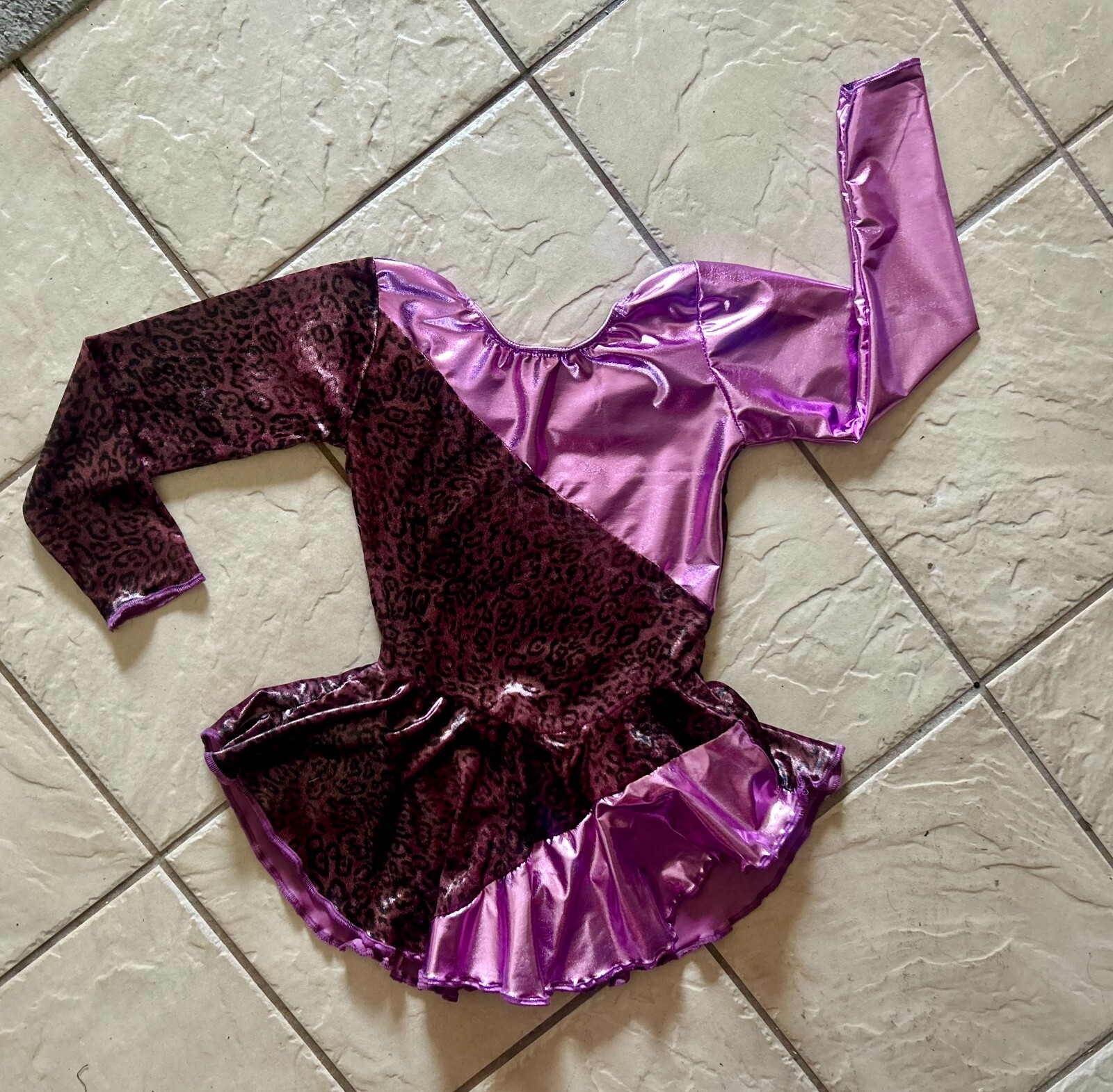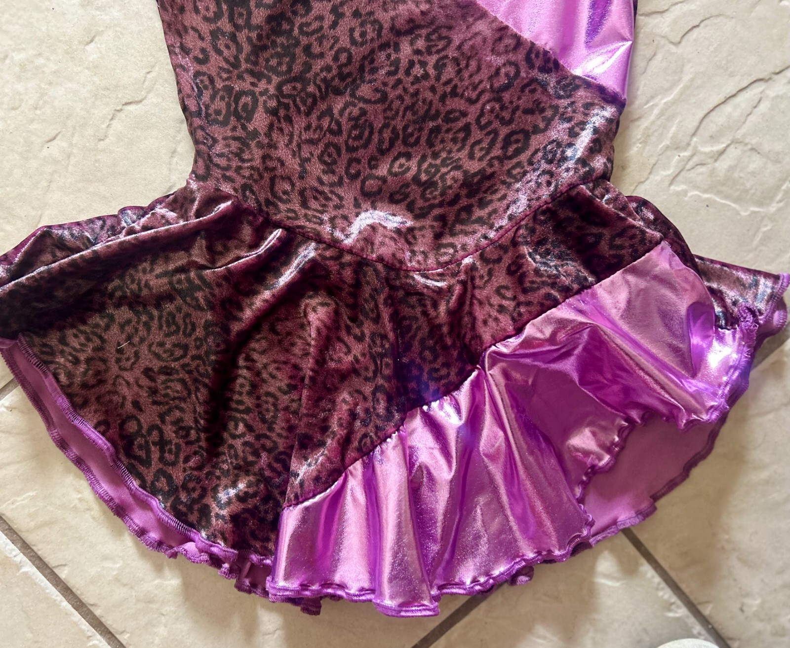 как выглядит NEW Girls PURPLE Leopard VELVET Metallic Competition FIGURE ICE SKATING Dress фото