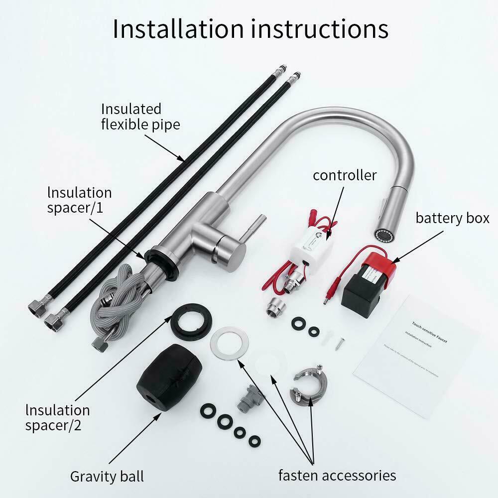как выглядит Touch On Kitchen Sink Faucet Swivel Pull Out Sprayer Mixer Tap Brushed Nickel фото