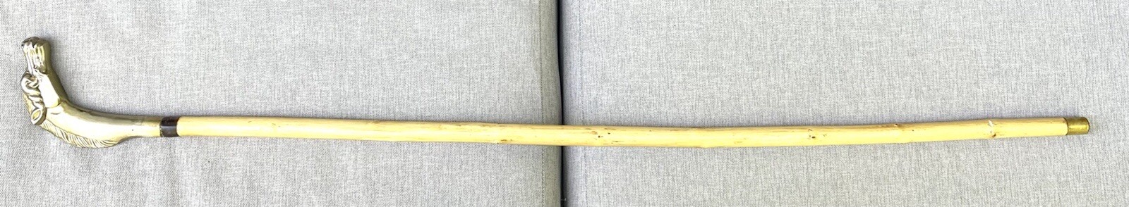 Vintage Brass Weighted Horse Handle Hardwood Knobby Shaft Walking Stick Cane 34
