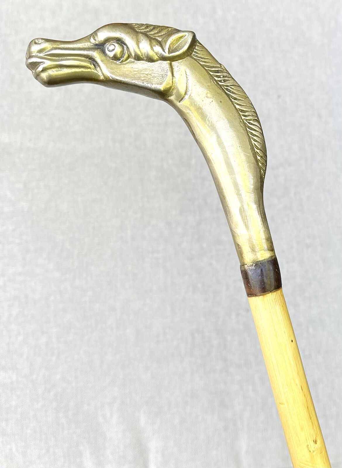 как выглядит Vintage Brass Weighted Horse Handle Hardwood Knobby Shaft Walking Stick Cane 34 фото