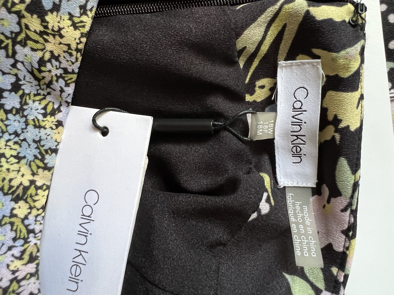 как выглядит NWT Calvin Klein Floral Print Ruffle Trim Asymmetrical Hem Skirt Womens Size 18 фото