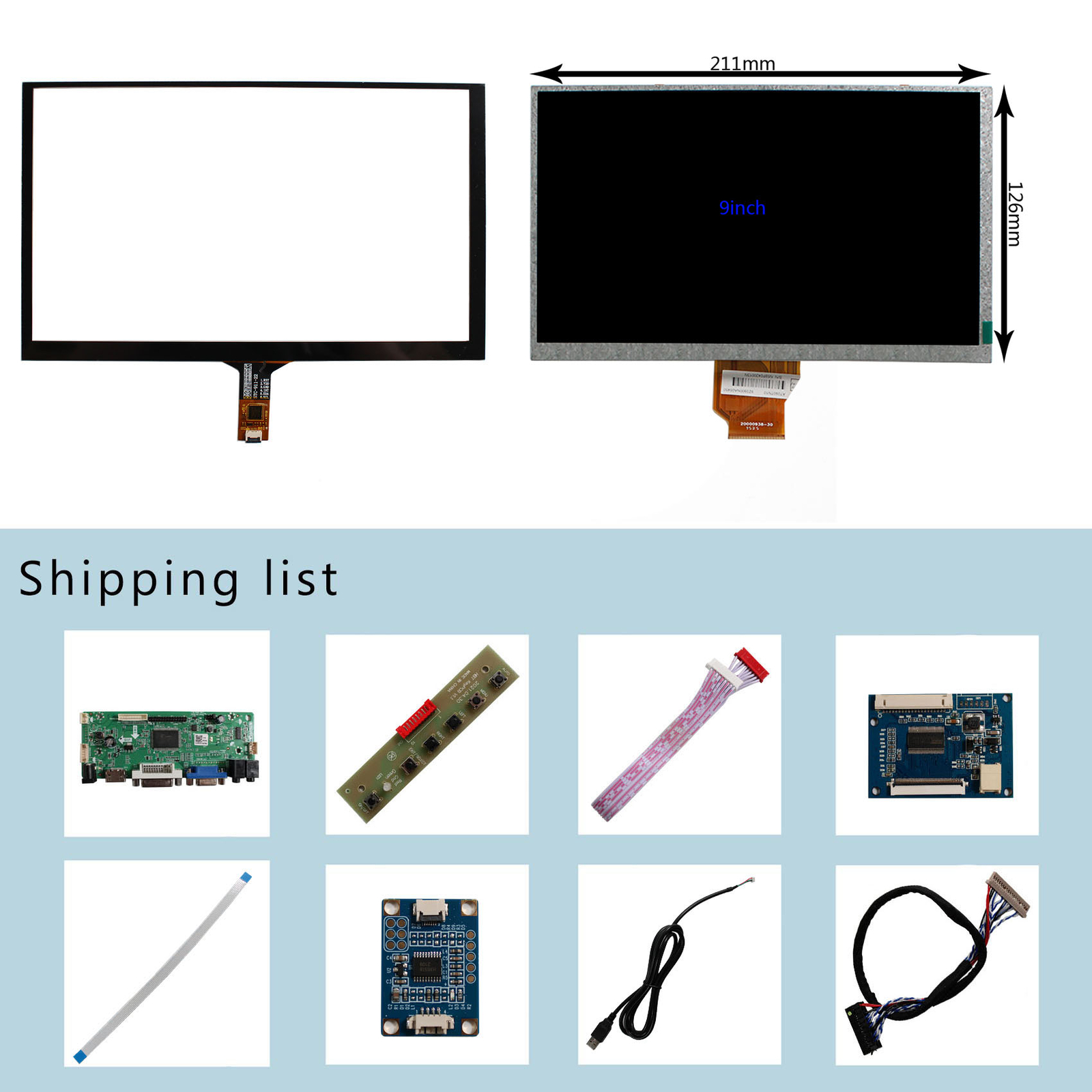 HD DVI VGA LCD Controller Board With 9 in 800X480 Capacitive Tocuh Panel LCD