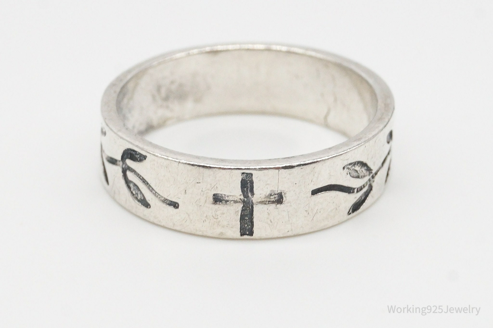 как выглядит Vintage Cross Sterling Silver Band Ring - Size 11.75 фото