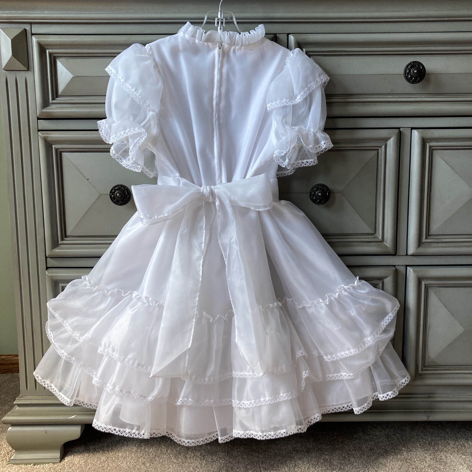 как выглядит Vintage Merry Girl White Sheer Party Girls Dress Size 8 фото