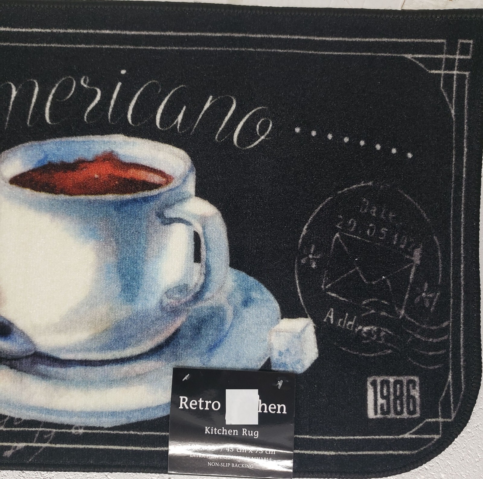Printed Kitchen Rug nonskid 18x30 AMERICANO COFFEE CUP SUGAR CUBES,RETRO,AH