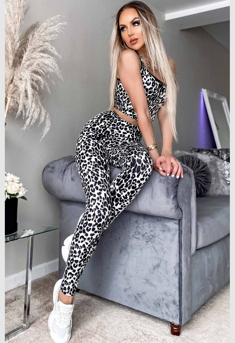 Womens Grey Ariel Animal Print Two Piece Loungewear Set