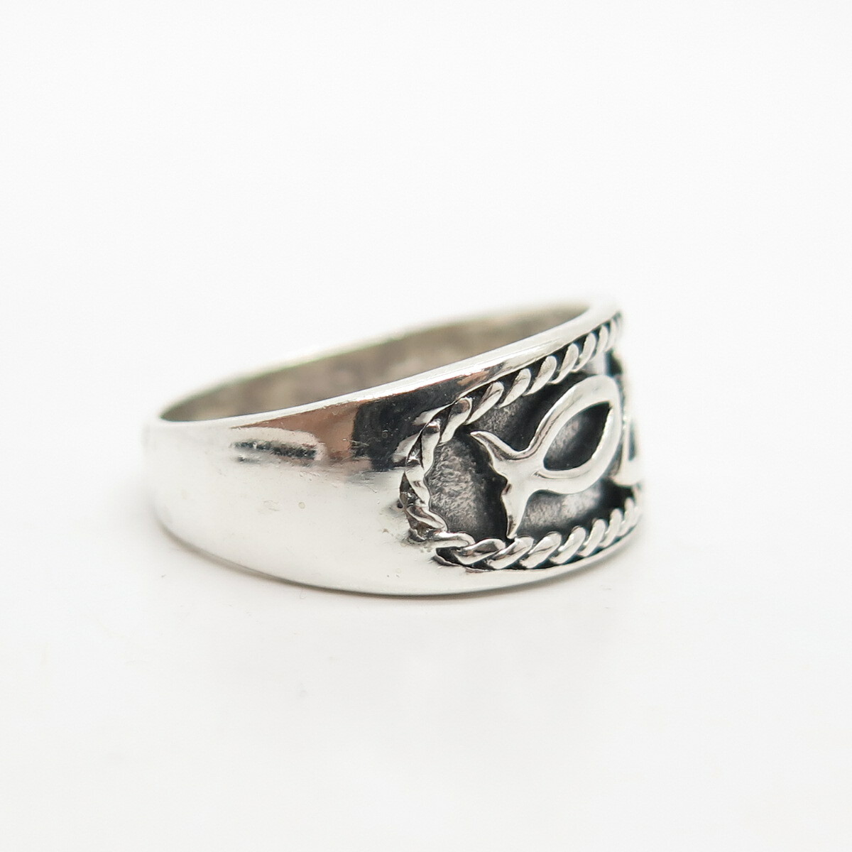 как выглядит 925 Sterling Silver Vintage Abstract Fish Ring Size 7 фото