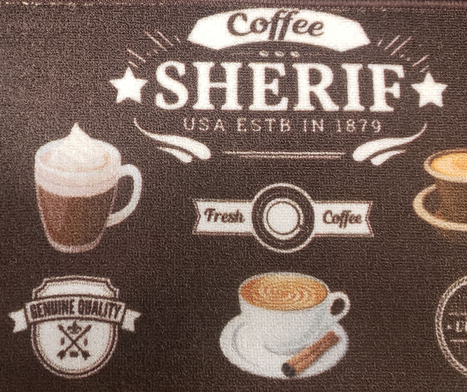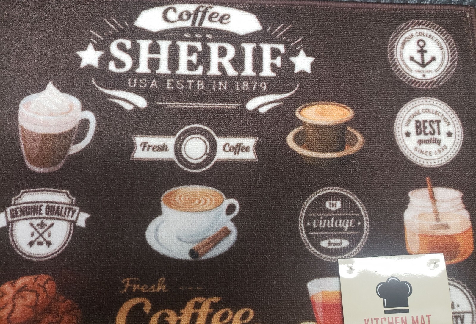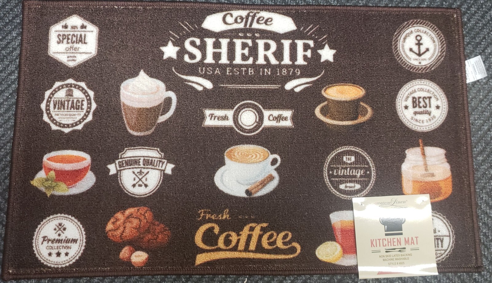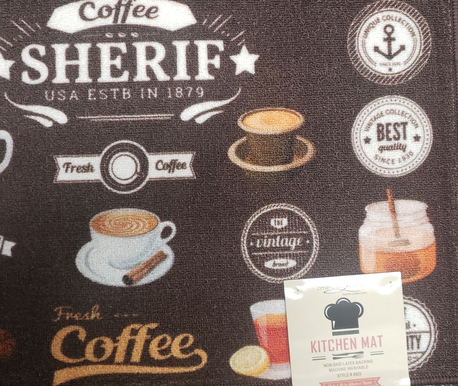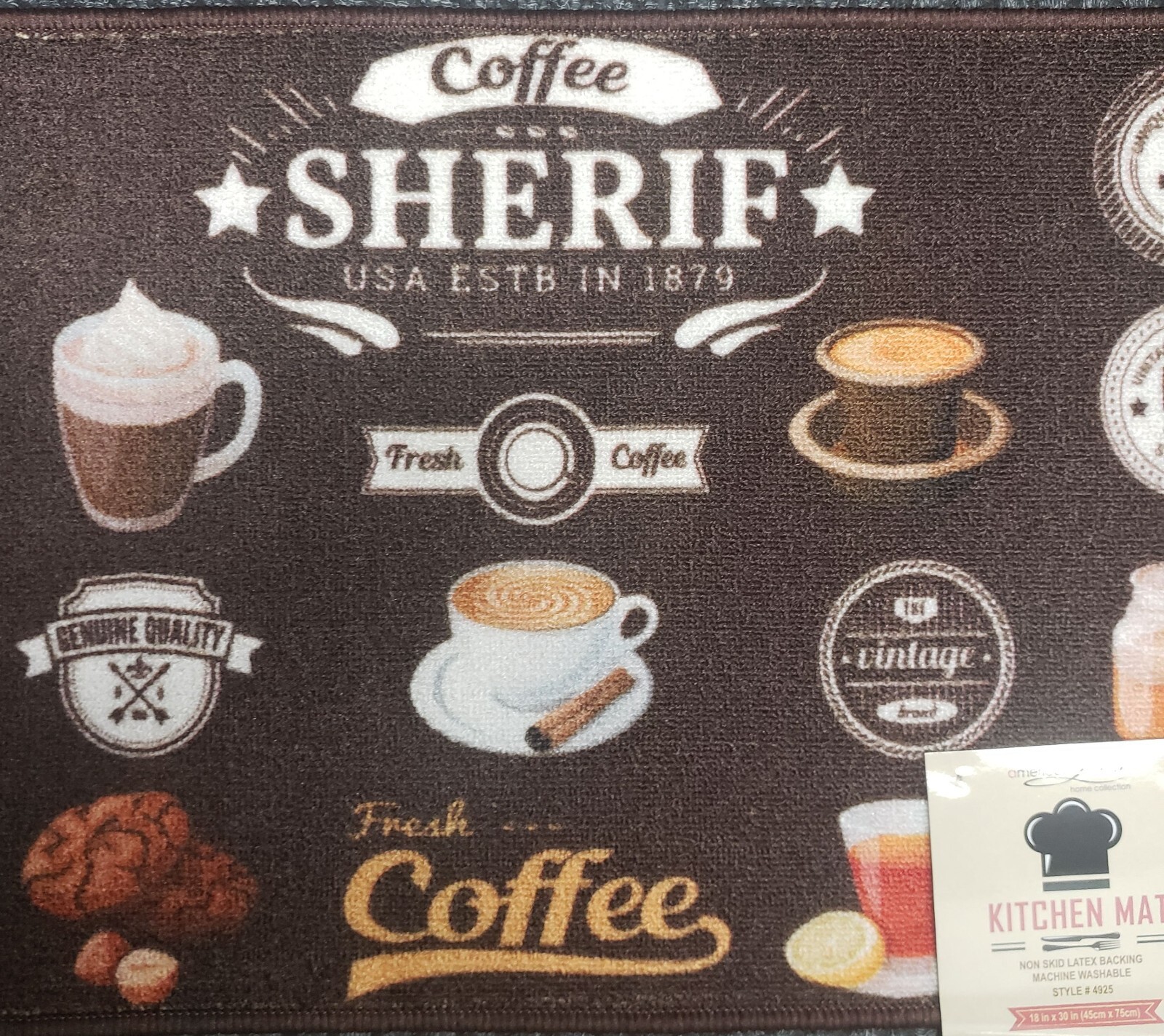 Printed Nylon Kitchen Rug nonskid back 18x30 FRESH COFFEE SHERIF, AL
