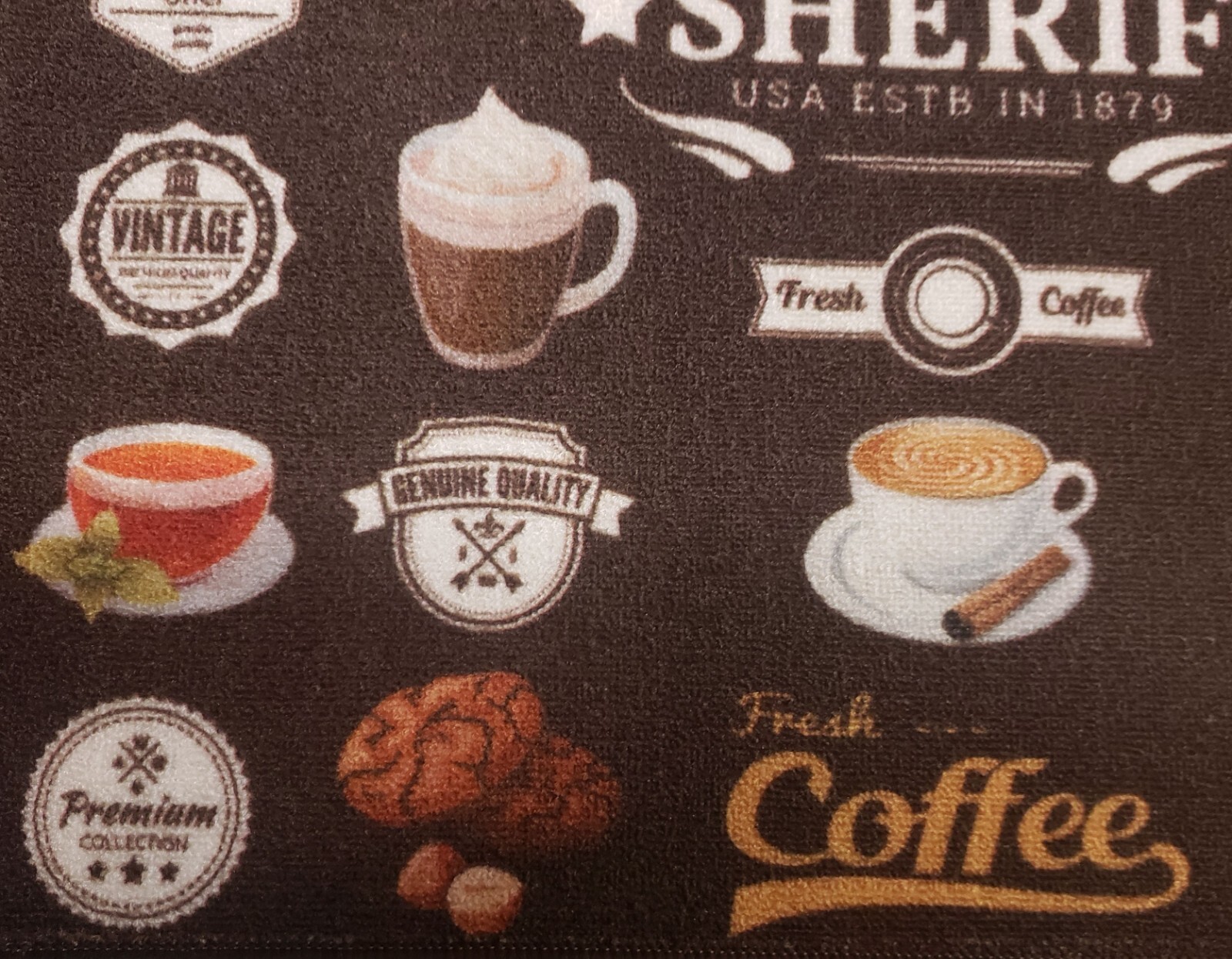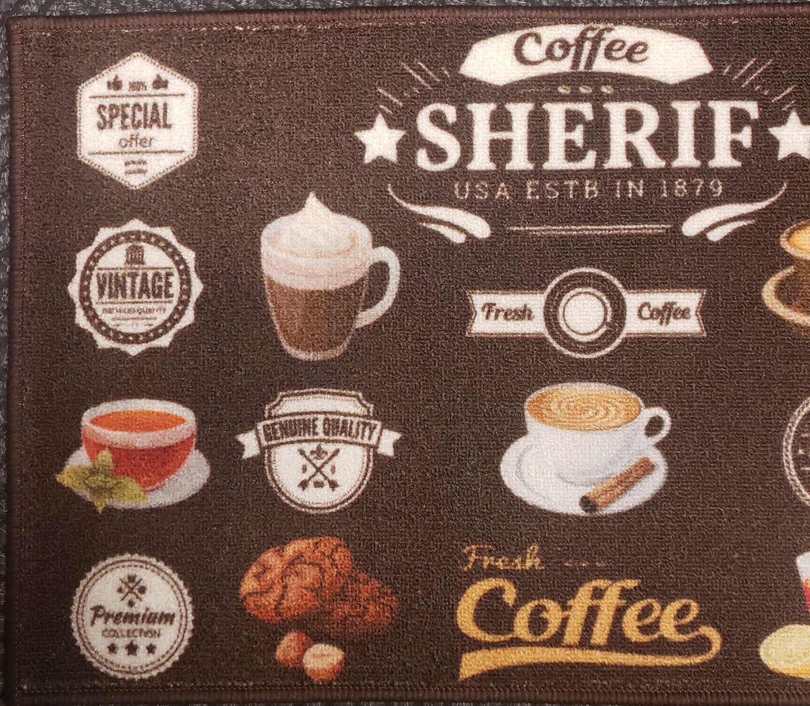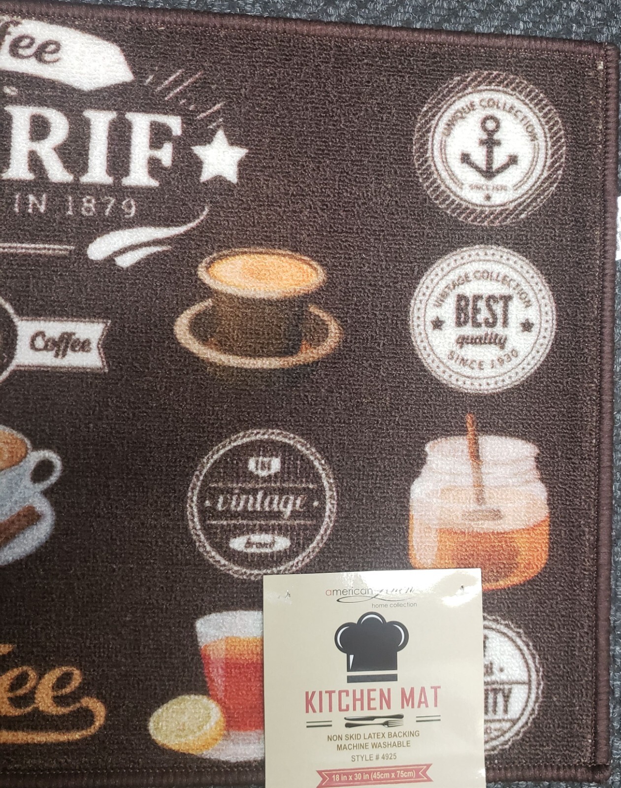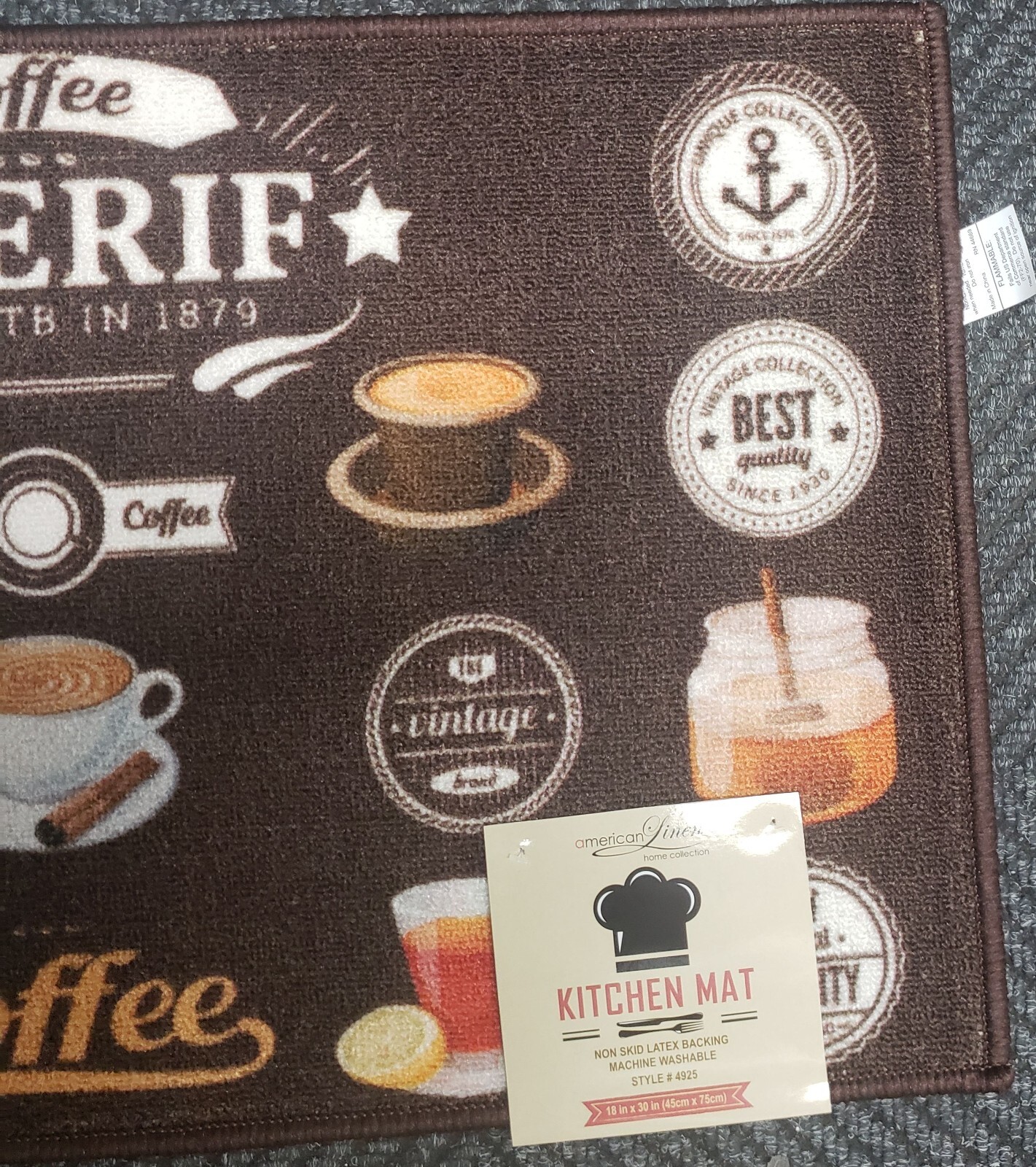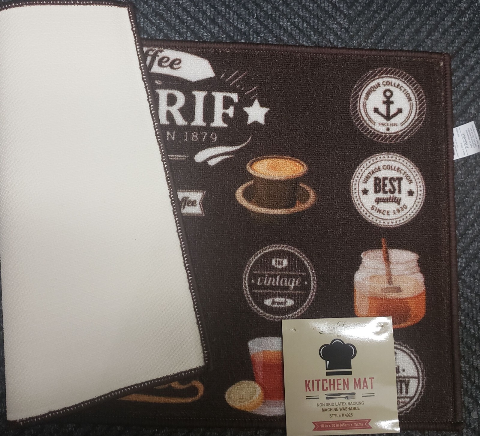 Printed Nylon Kitchen Rug nonskid back 18x30 FRESH COFFEE SHERIF, AL