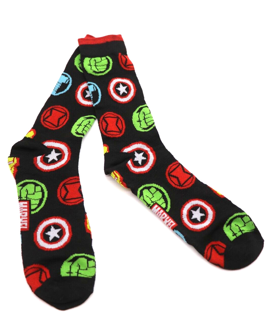 MENS-MARVEL- AVENGERS CAP - 2 PAIR PACK CREW SOCKS SHOE SIZE 6-12 NEW W TAGS