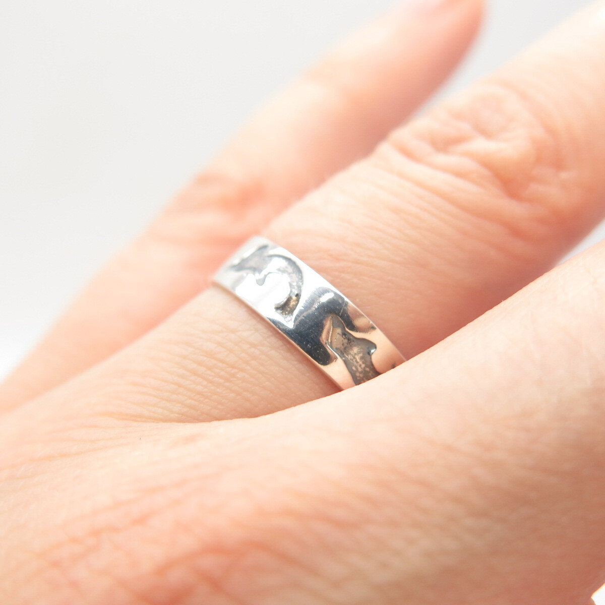 925 Sterling Silver Vintage Fish Band Ring Size 6.75