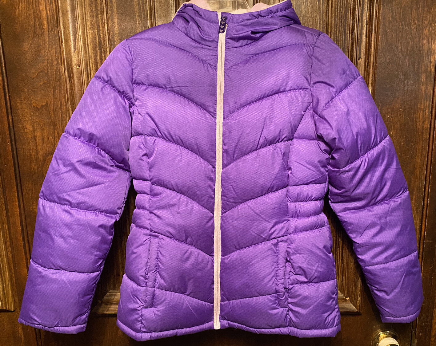 как выглядит Faded Glory Purple Hooded Puffer Jacket Coat Pink Lining Girls X-Large 14-16 фото
