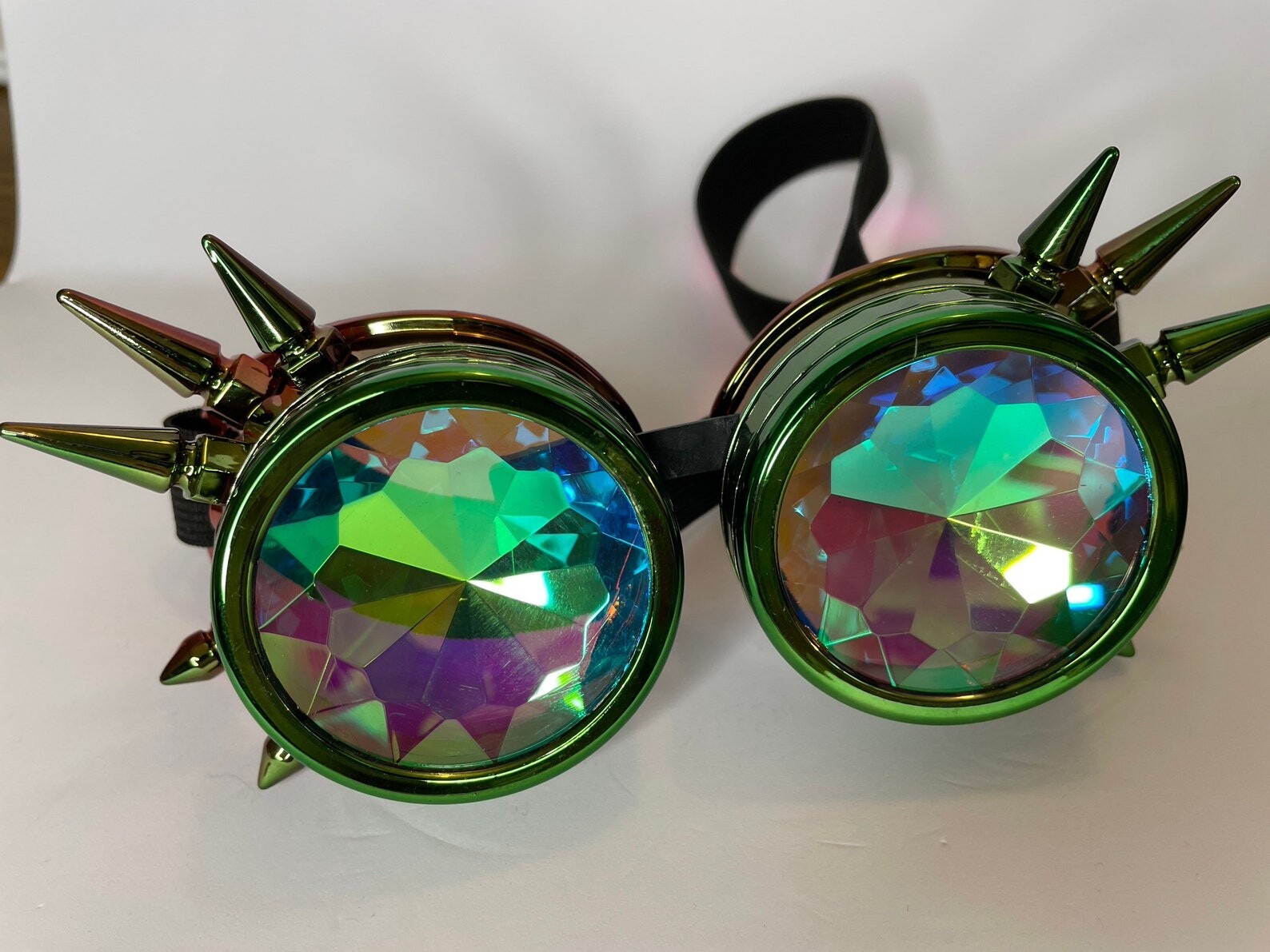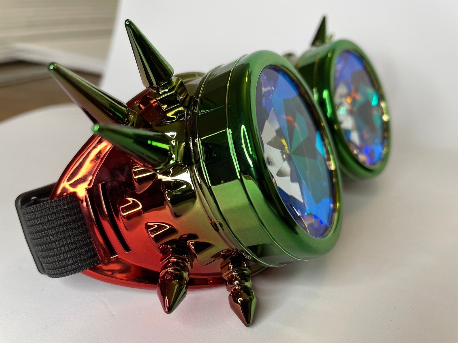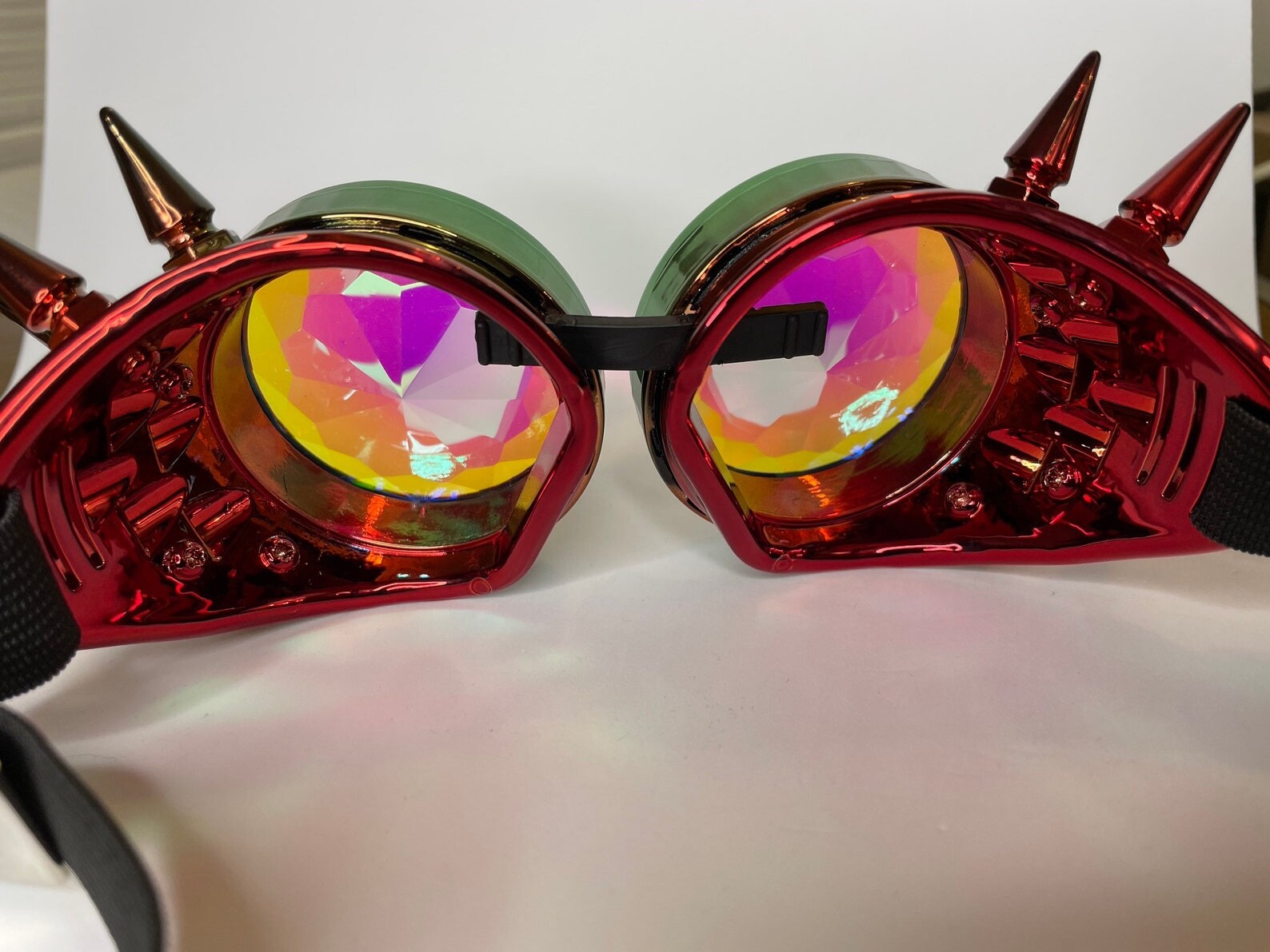 как выглядит Kaleidoscope Glasses Steampunk Cosplay Goggles Removable lens Red green фото