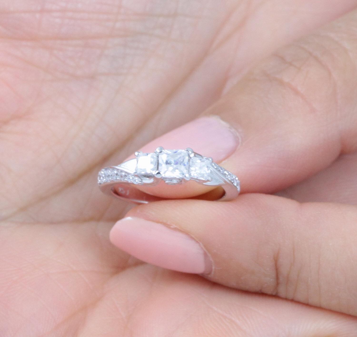 как выглядит Princess Cut 3-stone 925 Sterling Silver CZ Engagement Ring Band Size 3-14 S3342 фото