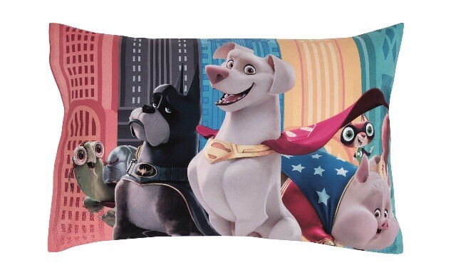 League of Superpets 4-Piece Toddler Bed Set Quilt, Pillowcase, Flat Fitted Sheet