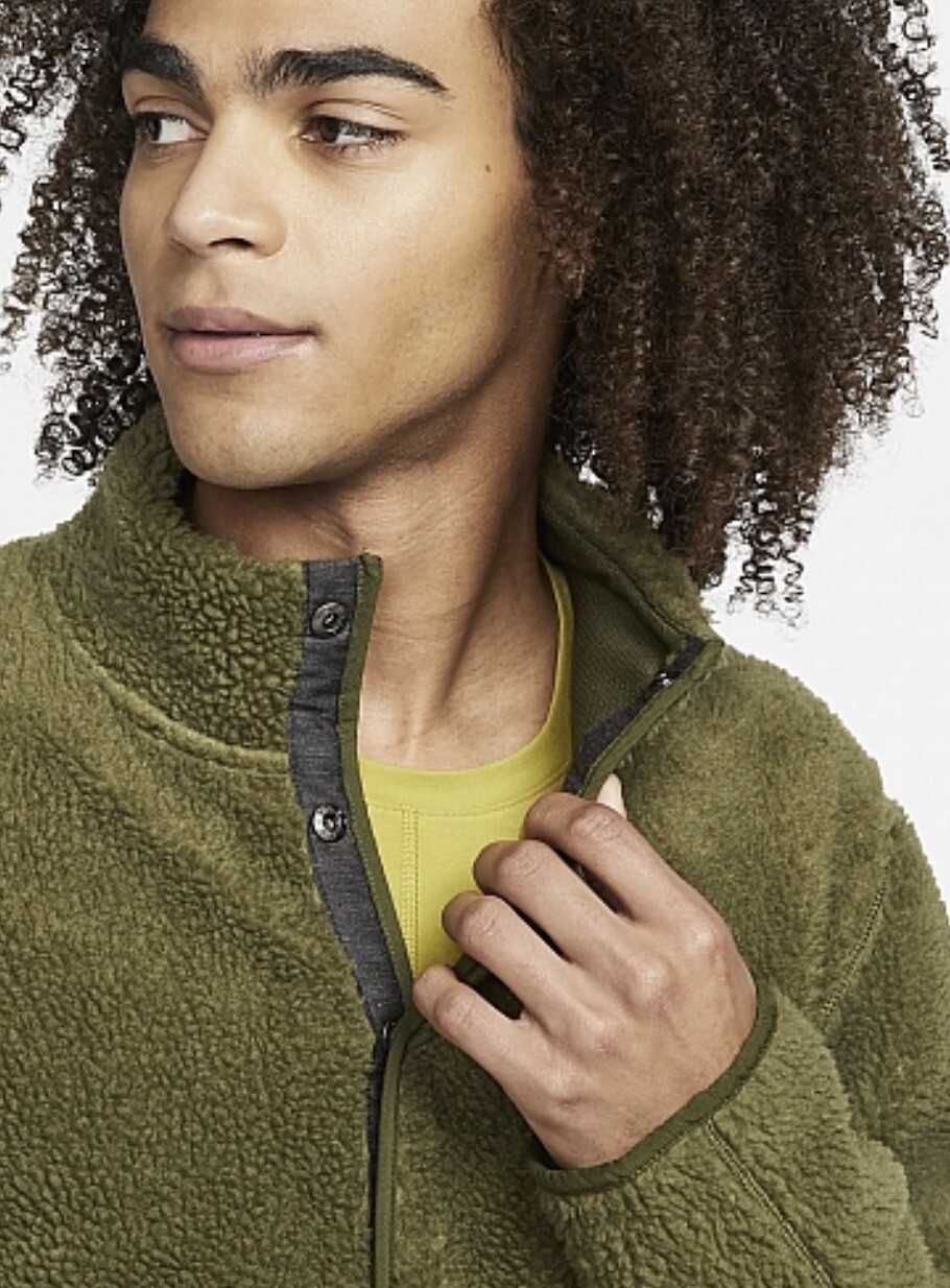 Nike Yoga Size Large Sherpa Fleece Pullover Jacket DD2182-326 Olive Green NEW