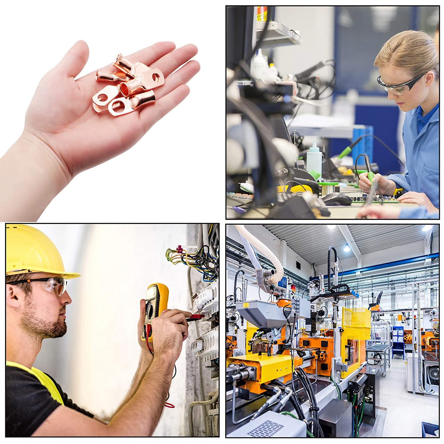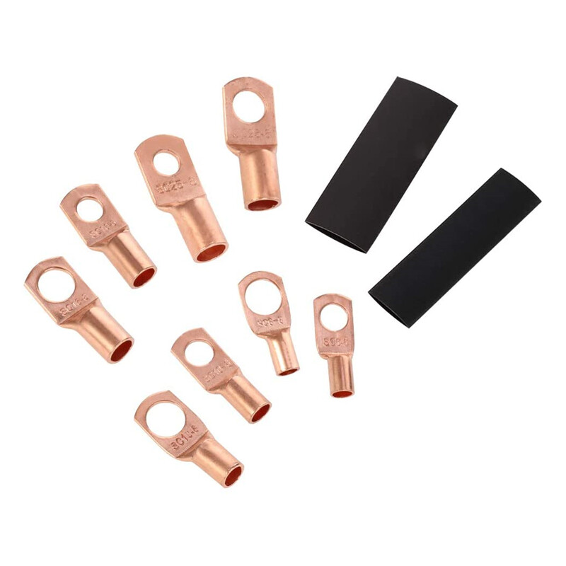 US 140PCS Battery Bare Copper Cable Lugs Ring Terminal Kit Crimp Wire Connectors