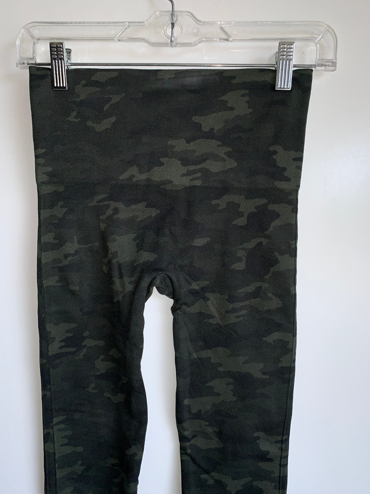 SPANX Seamless Green Camo Crop Leggings Small EUC
