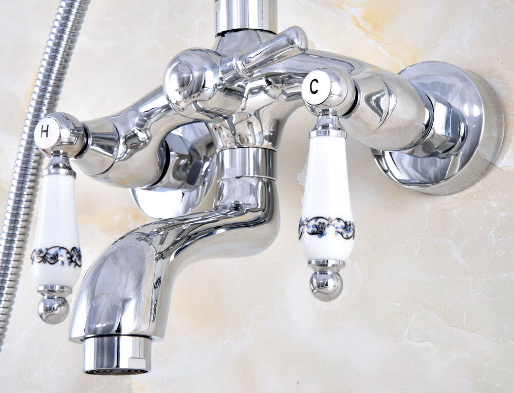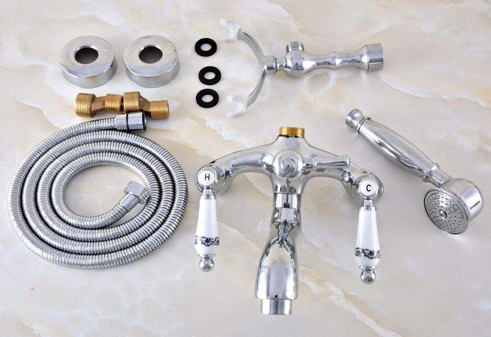Polished Chrome Clawfoot Bathroom Tub Faucet Mixer Tap W/ Hand Shower stf845