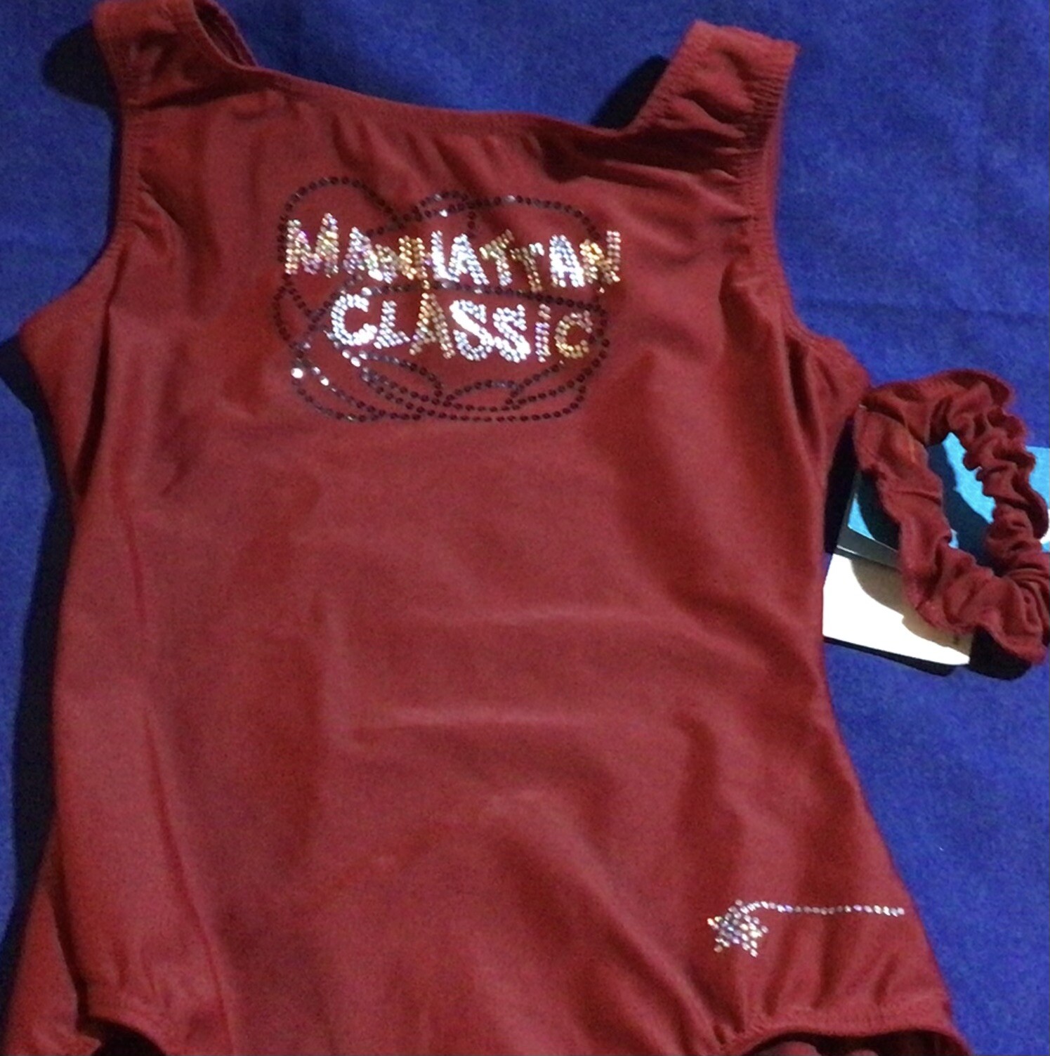 как выглядит NWT Dark Red Destira Gymnastics Leotard Sz AM Medium Manhattan Classic Scrunchie фото