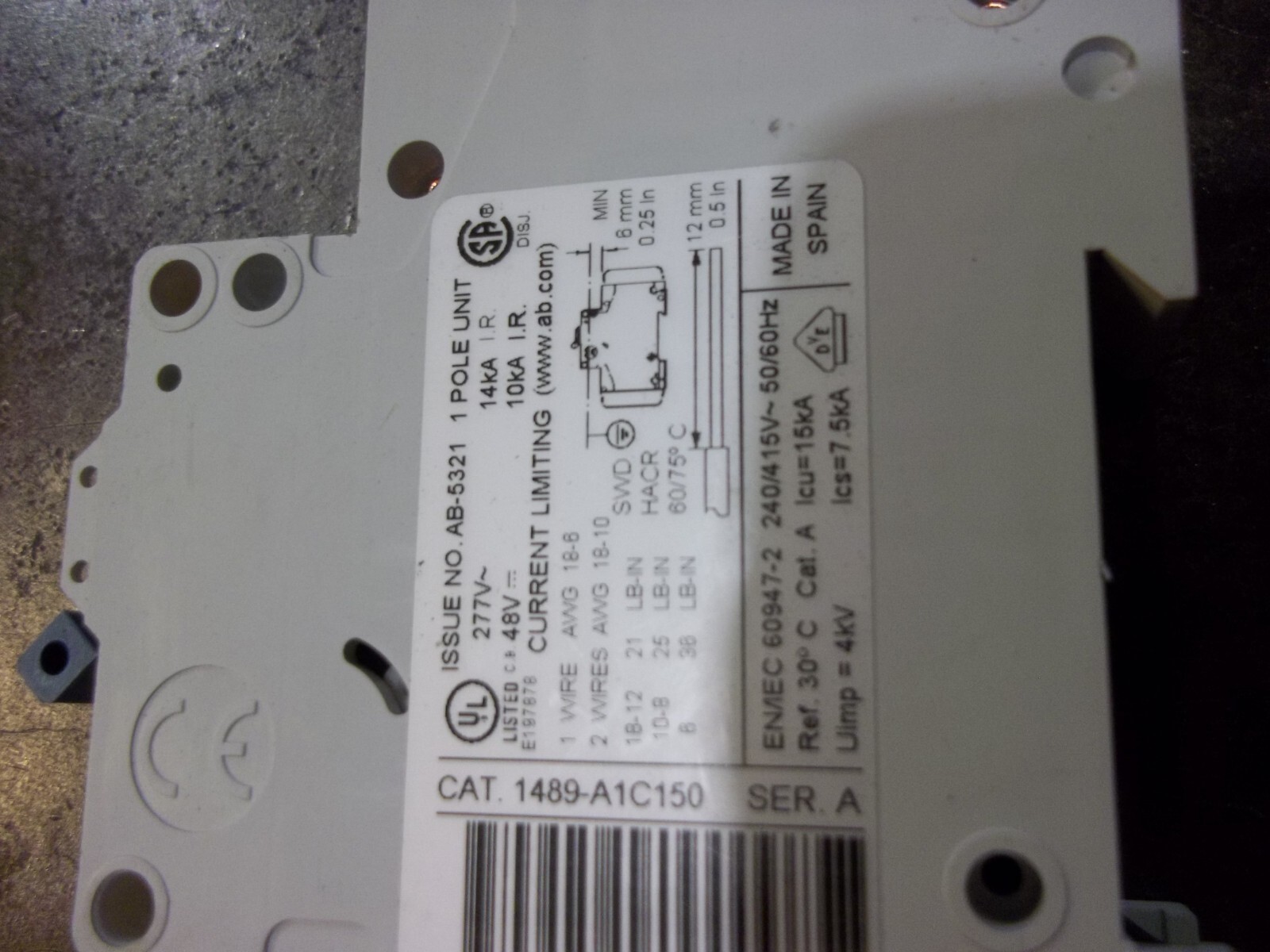 как выглядит ALLEN BRADLEY 1489-A1C150 SER A CIRCUIT BREAKER 15A SINGLE POLE 1P WL100 фото