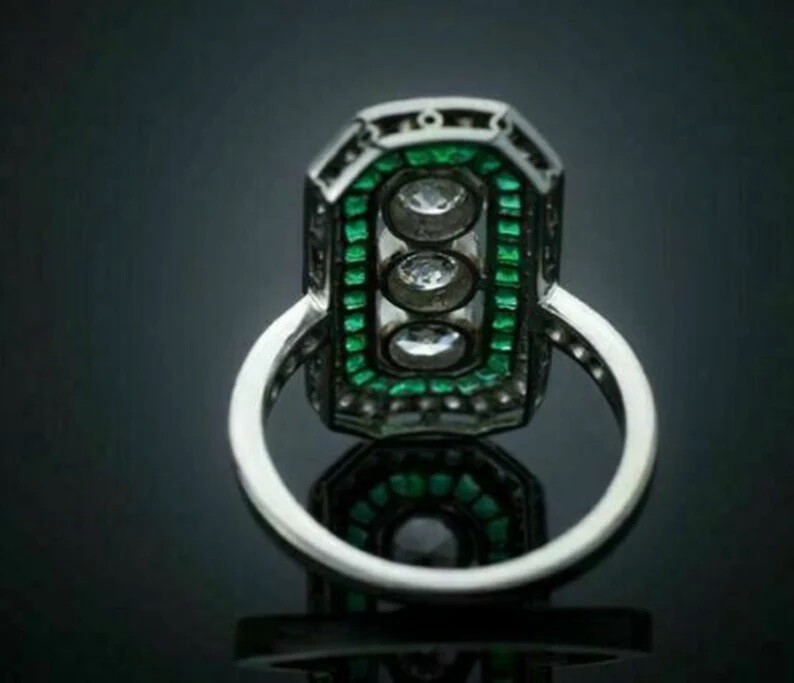 как выглядит 1Ct White Round Cut Bezel Set Art Deco Style Wedding Ring In 925 Sterling Silver фото