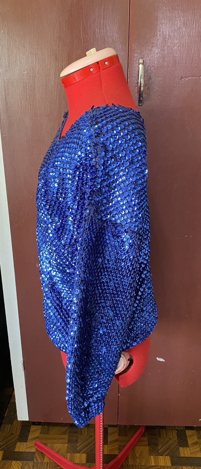 Vintage Emily s Yarn Shop Hawaii Blue Sequined Sequins Sweater Medium Hand Knit