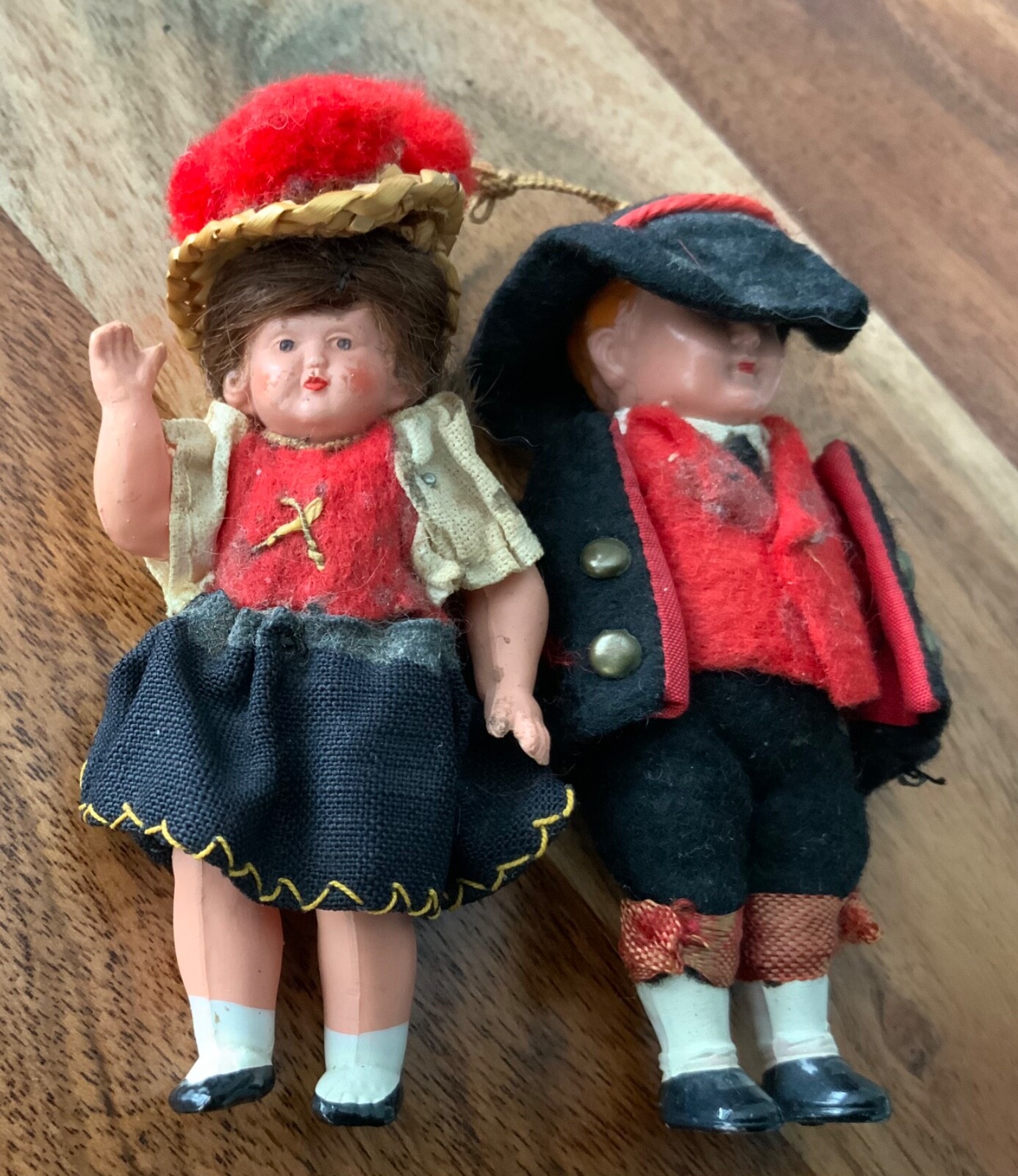 RARE VINTAGE GERMAN PLASTIC CELLULOID DOLLS PAIR BOY GIRL DOLL DRESSED c1920s