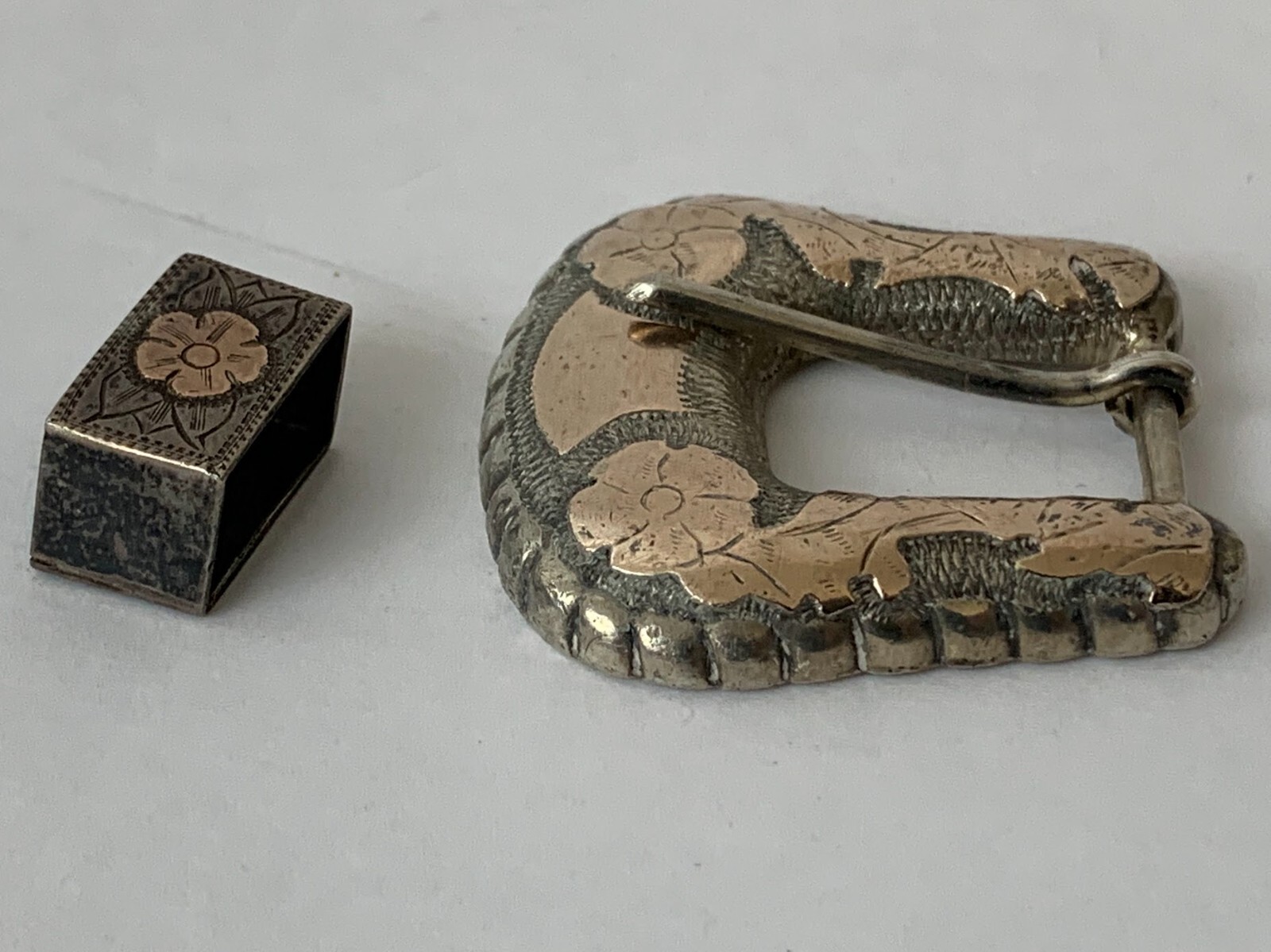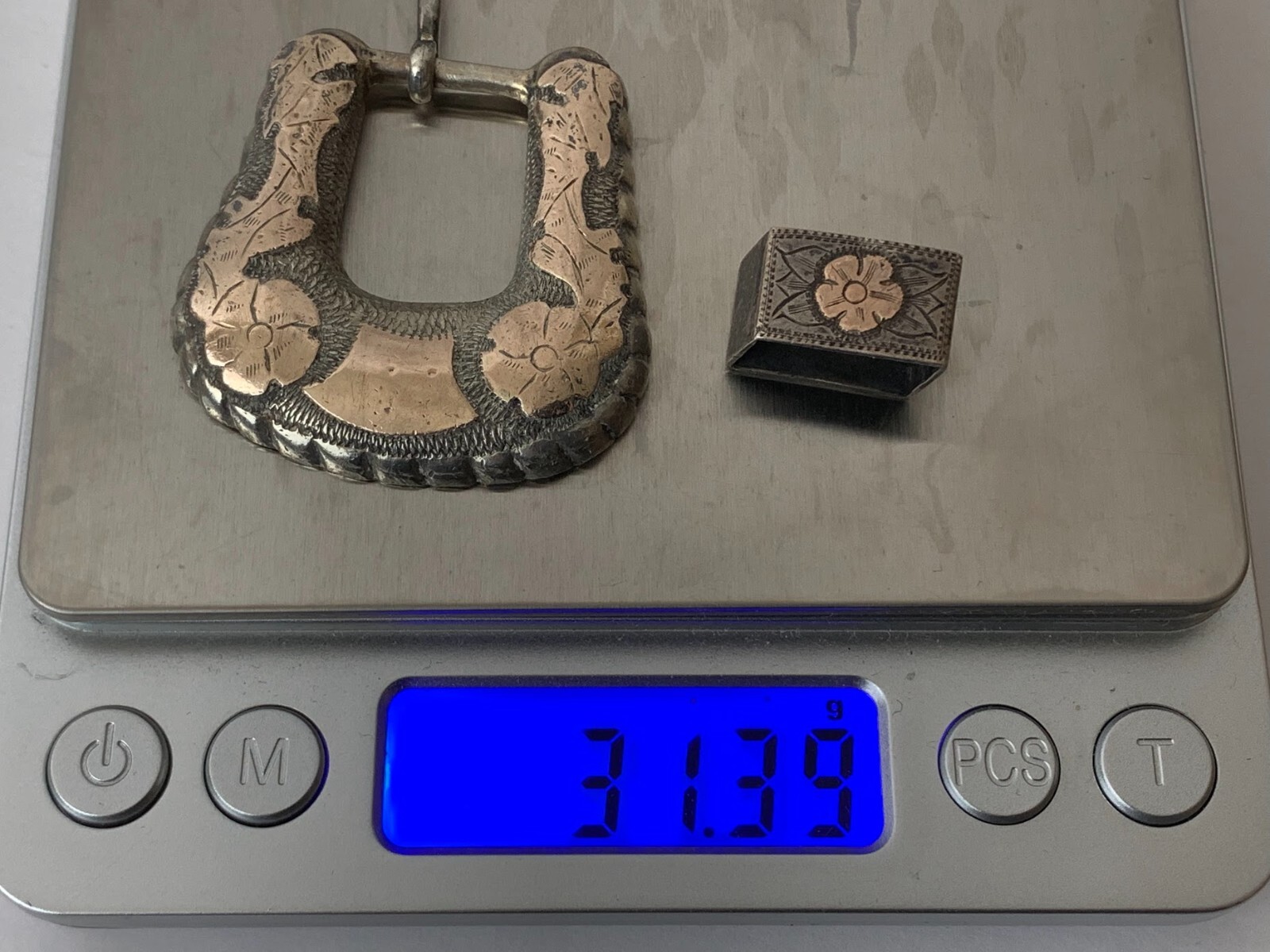 как выглядит Vintage Southwestern Sterling Silver Gold Belt Buckle фото