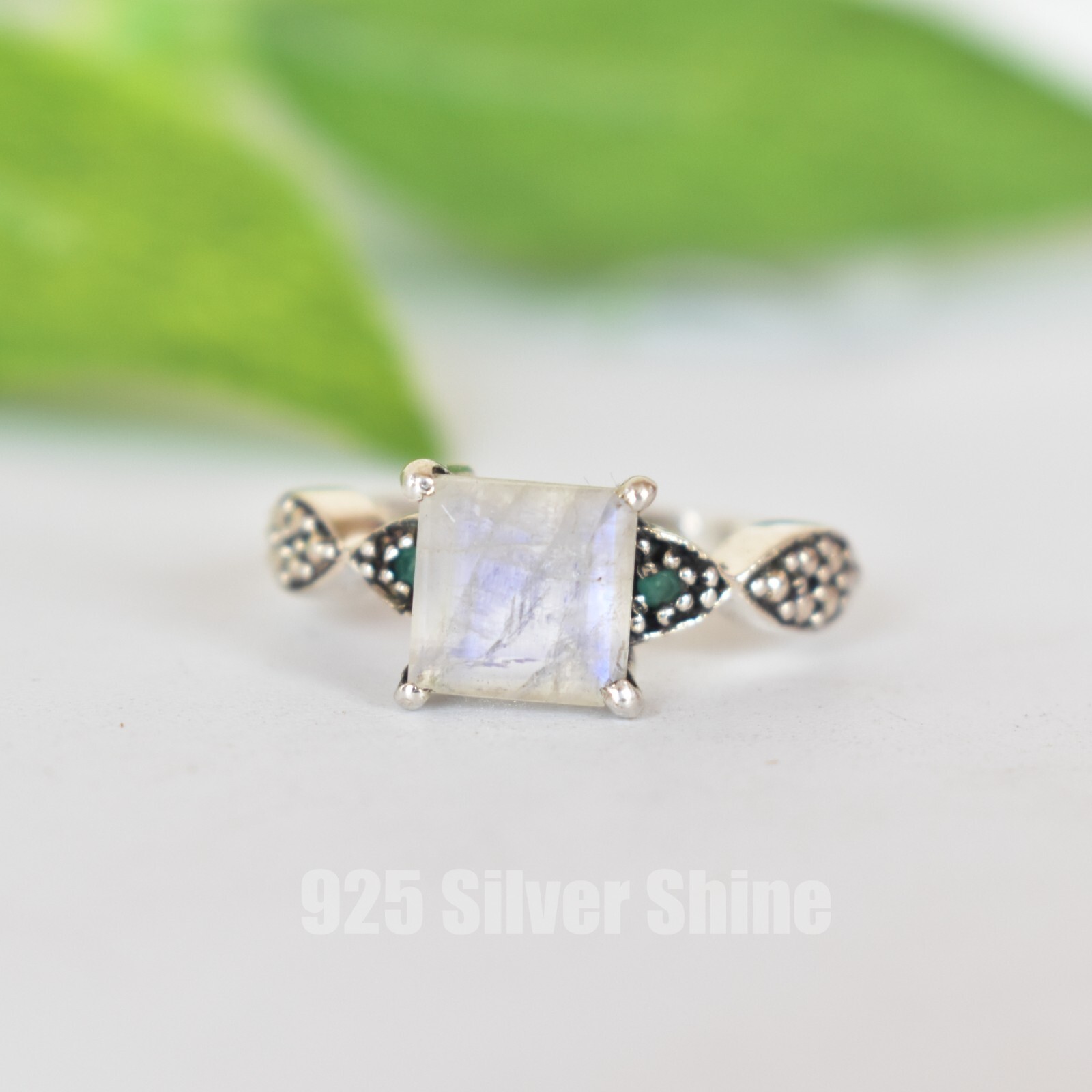 как выглядит RAINBOW MOONSTONE NATURAL GEMSTONE 925 SOLID STERLING SILVER JEWELRY RING 3 TO12 фото