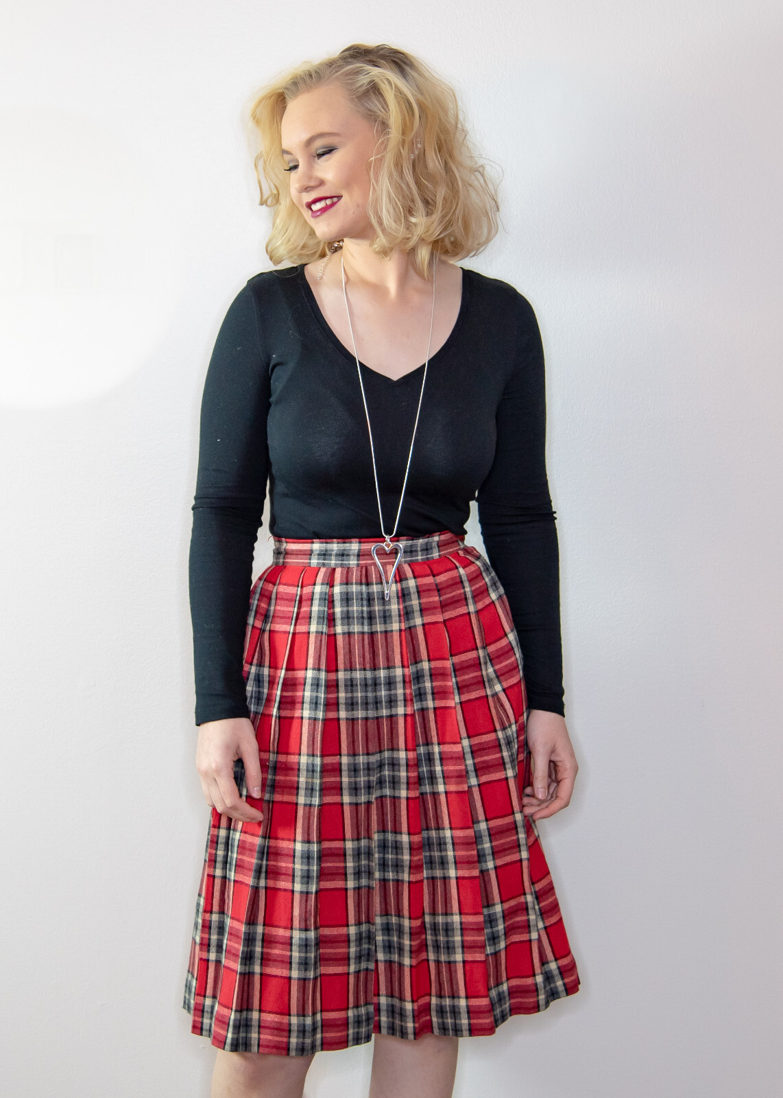 1970s Vintage Multi Plaid Wool Blend A-Line Midi Skirt Metal Zipper