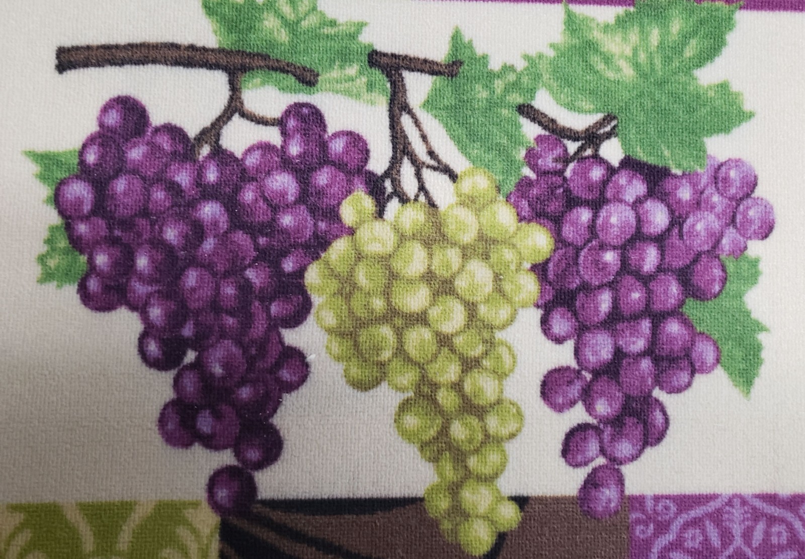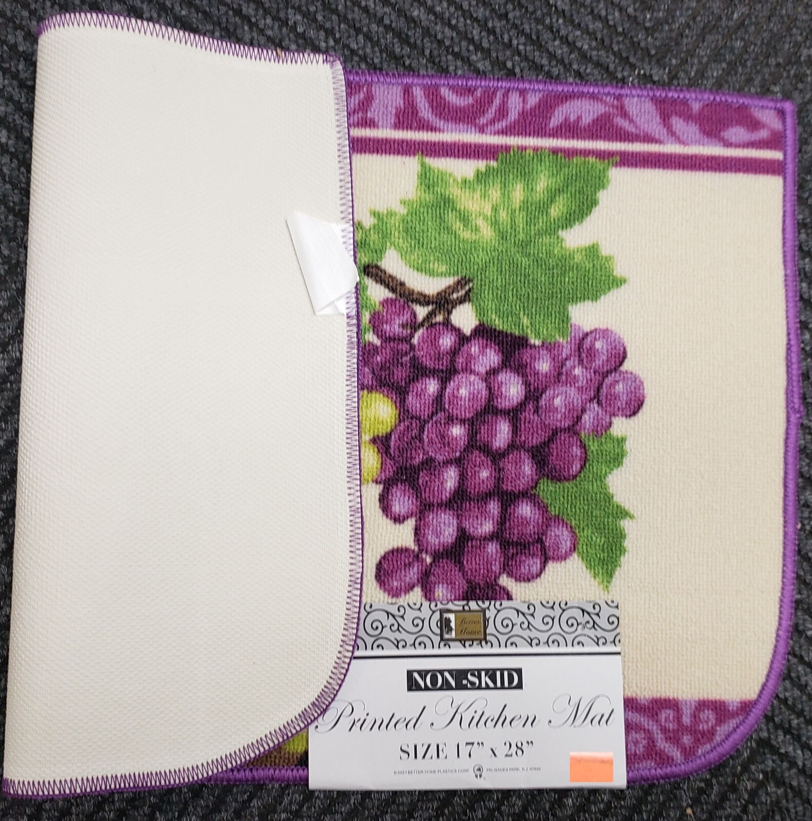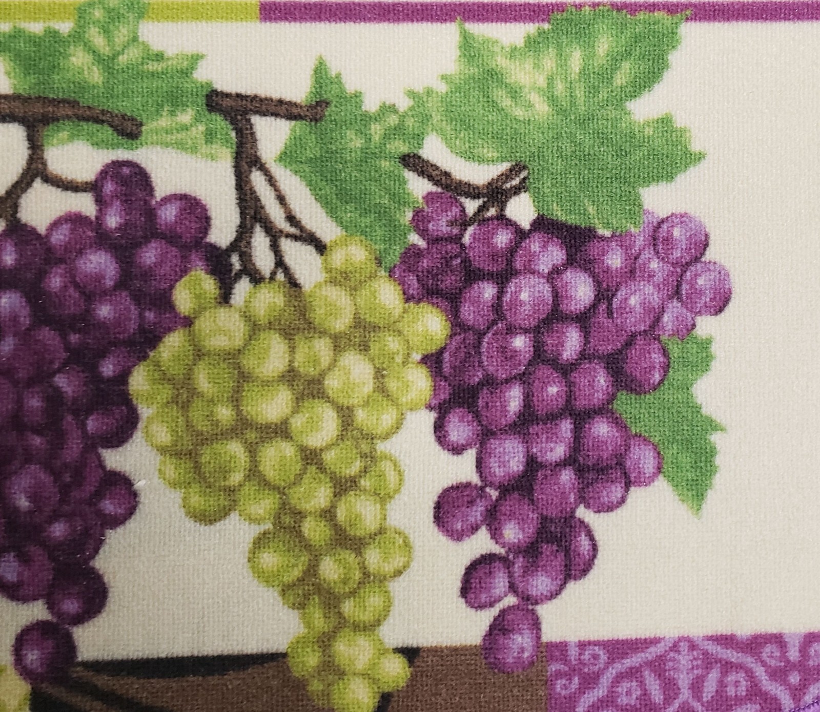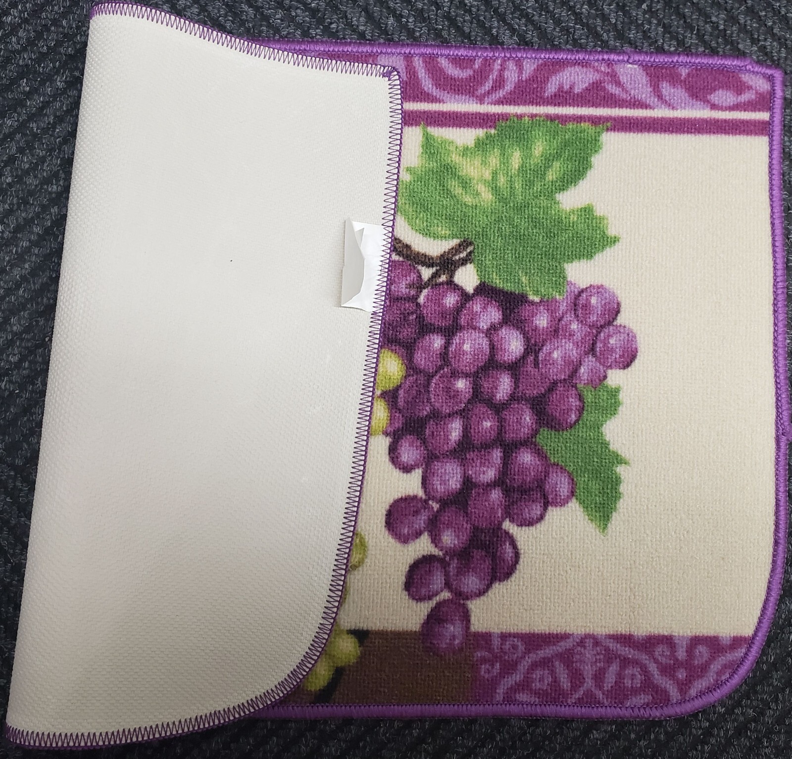 KITCHEN PRINTED NYLON RUG nonskid back 17x28 PURPLE GREEN GRAPES,D Shape,BH