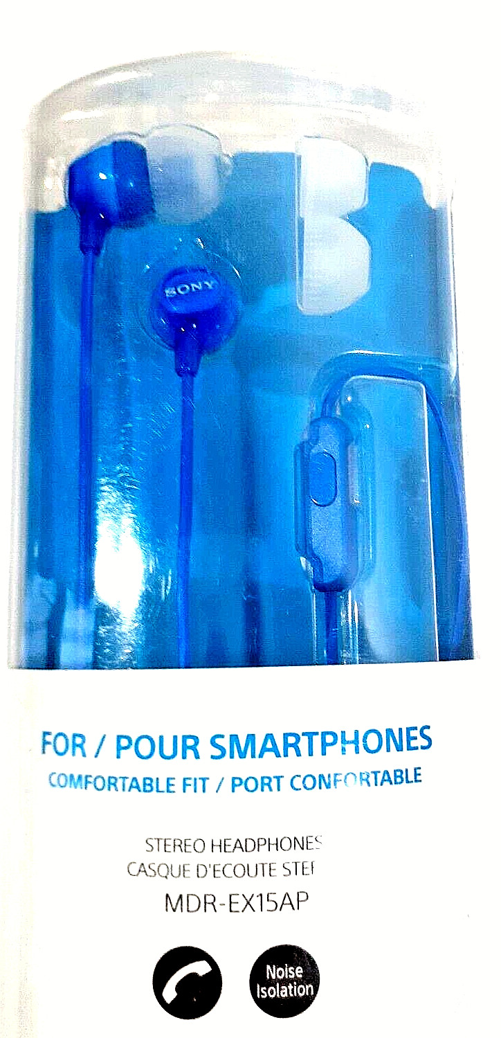 Sony for Smartphones Ear Earbud Headphones with Mic, Blue 2 Qty
