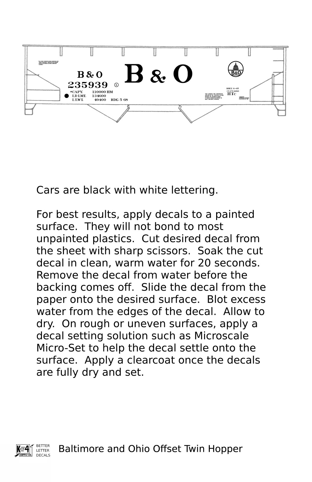 K4 O Scale Decals Baltimore and Ohio Offset Twin Hopper White