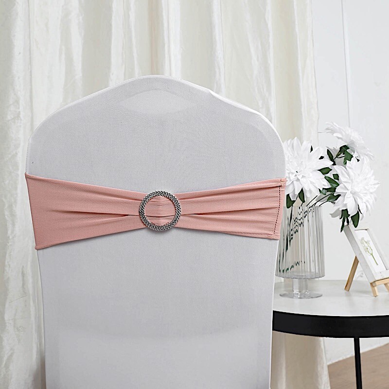 10 Dusty Rose Spandex CHAIR SASHES with Silver Round Buckles Wedding Decorations