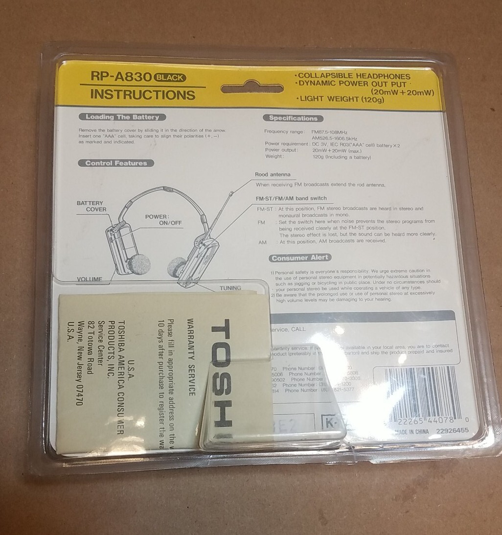 Toshiba RP-A830 am fm stereo headphone receiver factory sealed packaged
