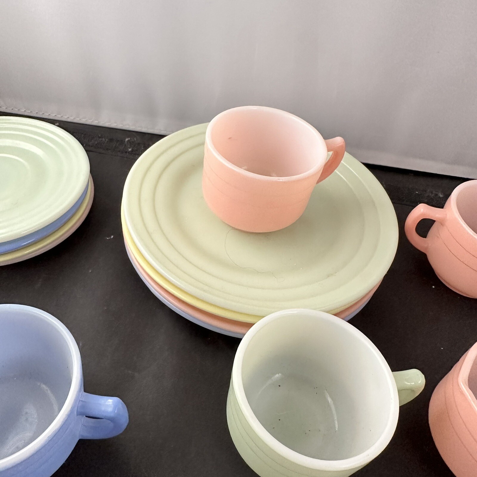 vintage Hazel Atlas moderntone childs pastel dishes hostess set 14 Pieces