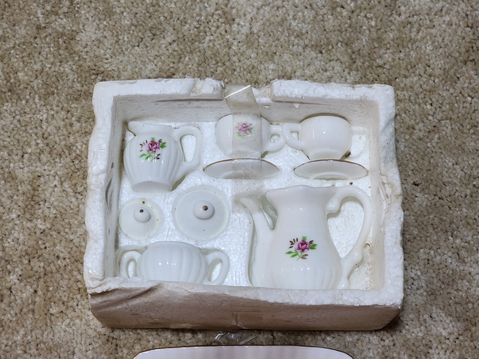 Vintage Miniature Tea Set Porcelain Bone China Dollhouse Mini Tea Pot Sugar Cups