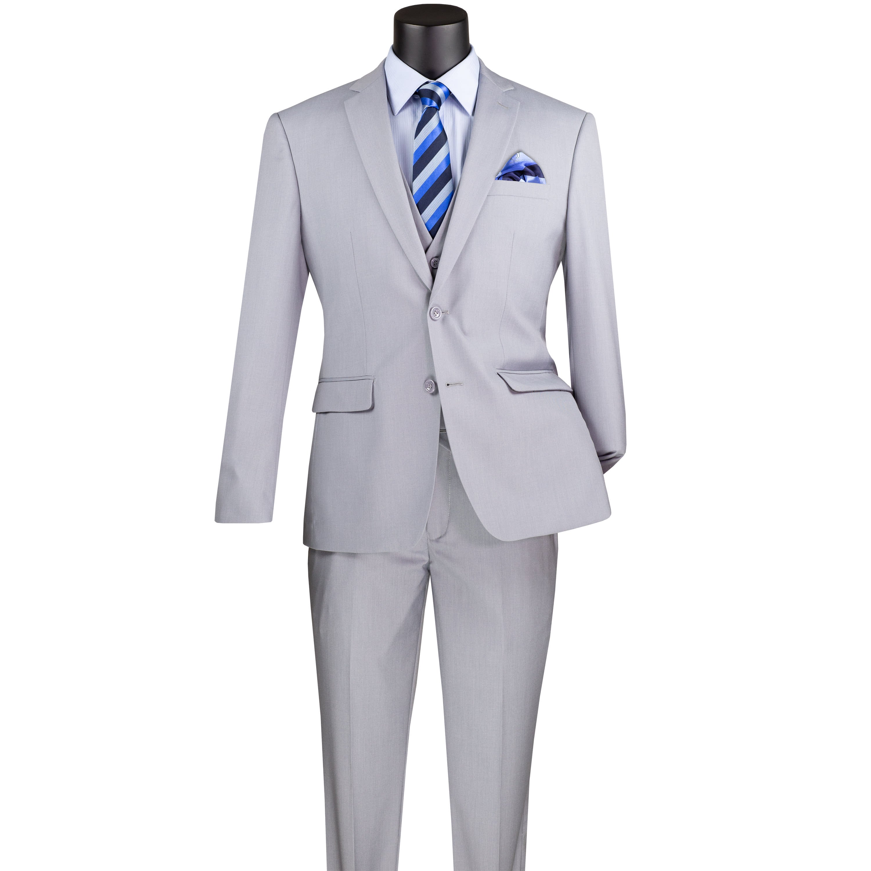 VINCI Men's Light Gray 3-Piece 2-Button Slim Suit w/ Matching Vest - NEW