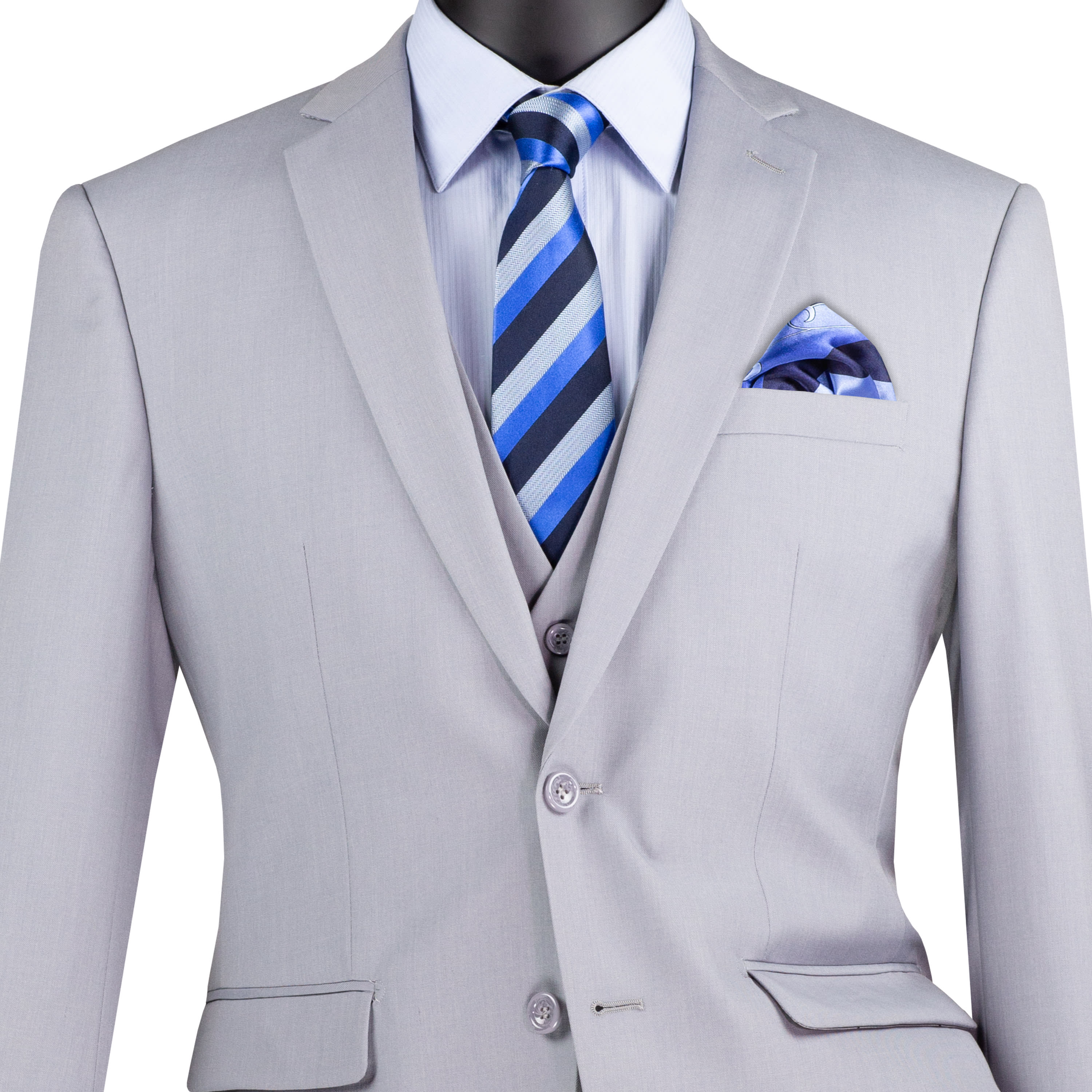VINCI Men's Light Gray 3-Piece 2-Button Slim Suit w/ Matching Vest - NEW