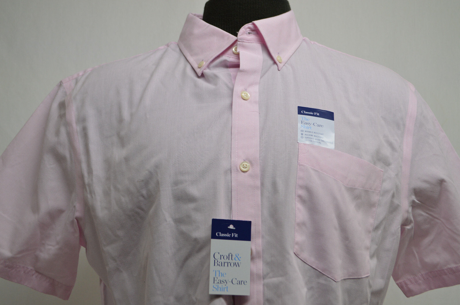 как выглядит NEW Mens Classic Fit Button-Down Collar Short Sleeve Dress Shirt Easy Care LARGE фото