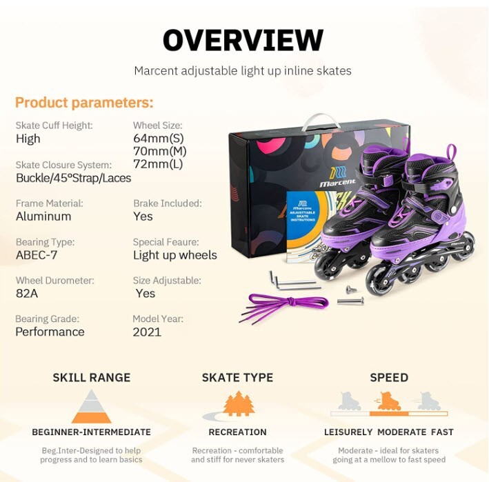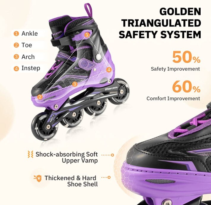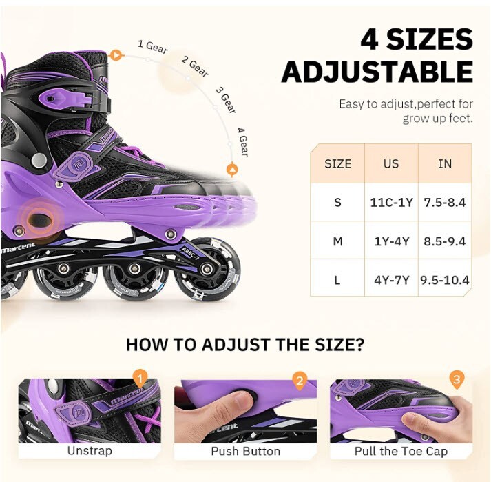 Adjustable Inline Skates for Boys and Girls w/Light up Wheels Purple