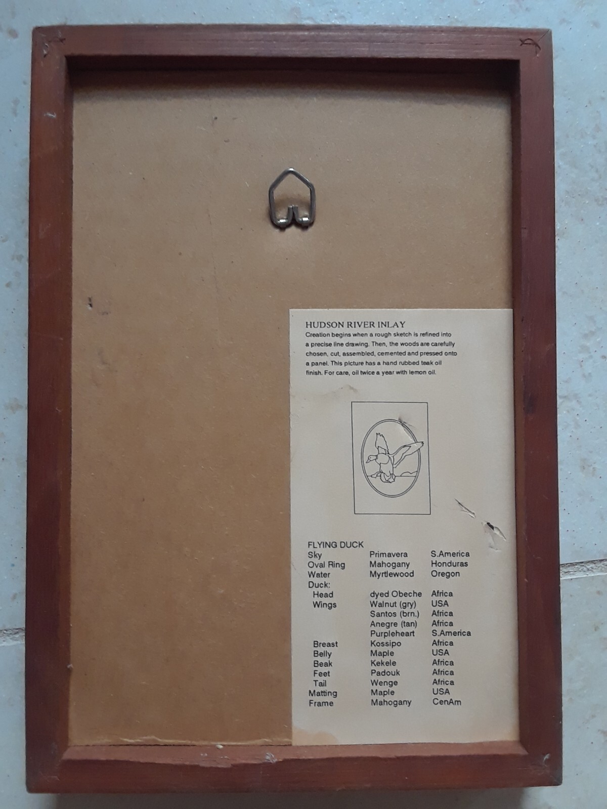 • HUDSON RIVER INLAY "Flying Duck" signed Nelson apprx 9.75" x 6.75" framed