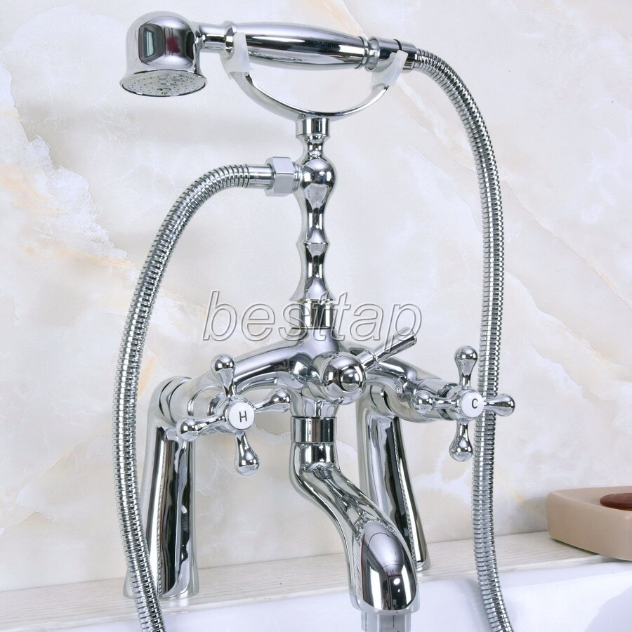 как выглядит Polished Chrome Deck Mounted ClawFoot Bath Tub Faucet With Hand Shower sna120 фото