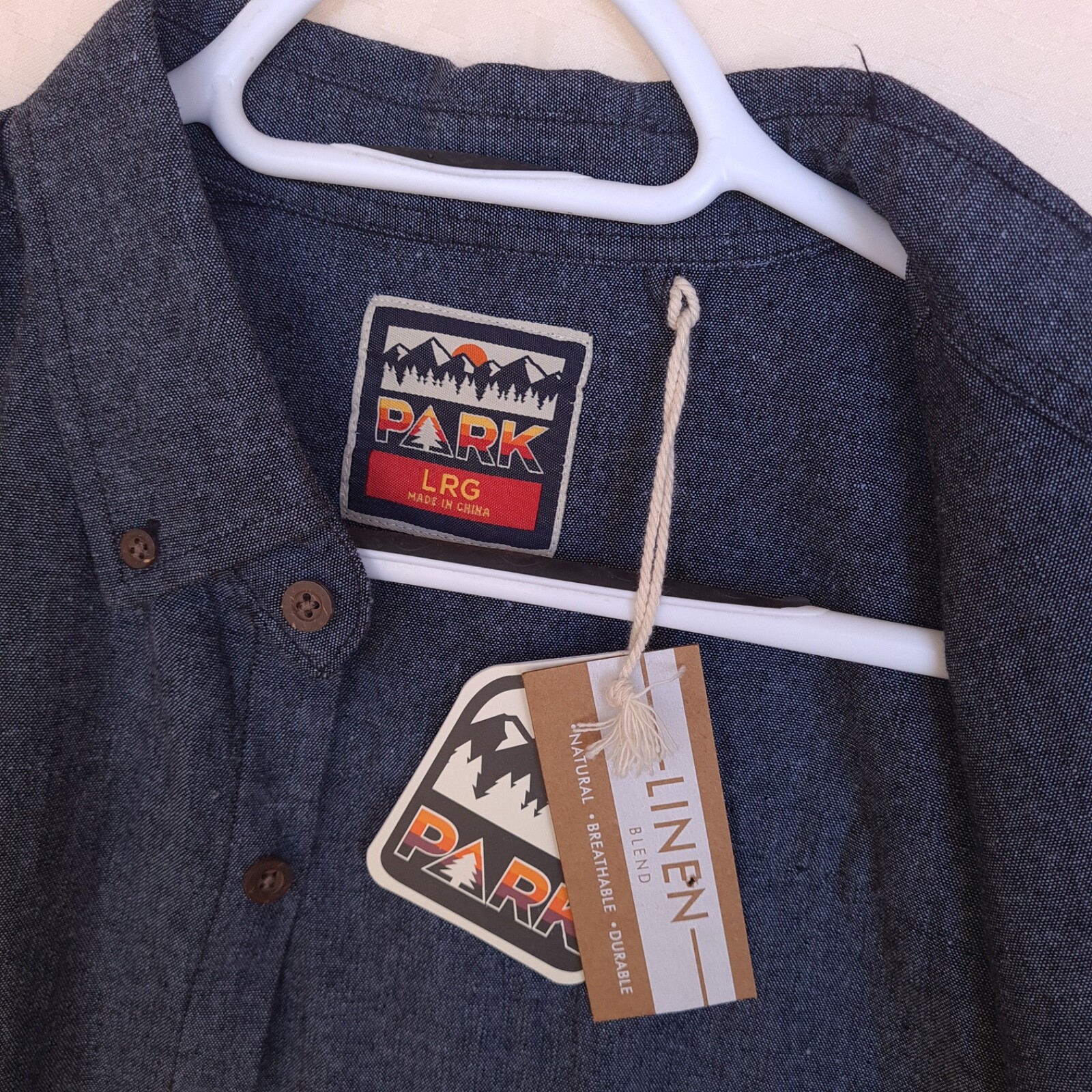 PARK Mens Dress Shirt Large Blue Long Sleeve Linen Blend Button Down Collar NWT