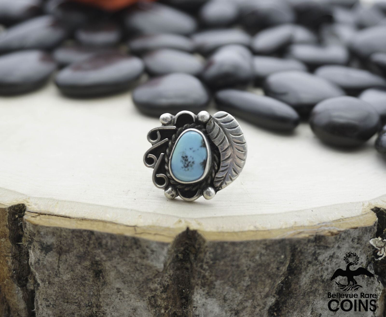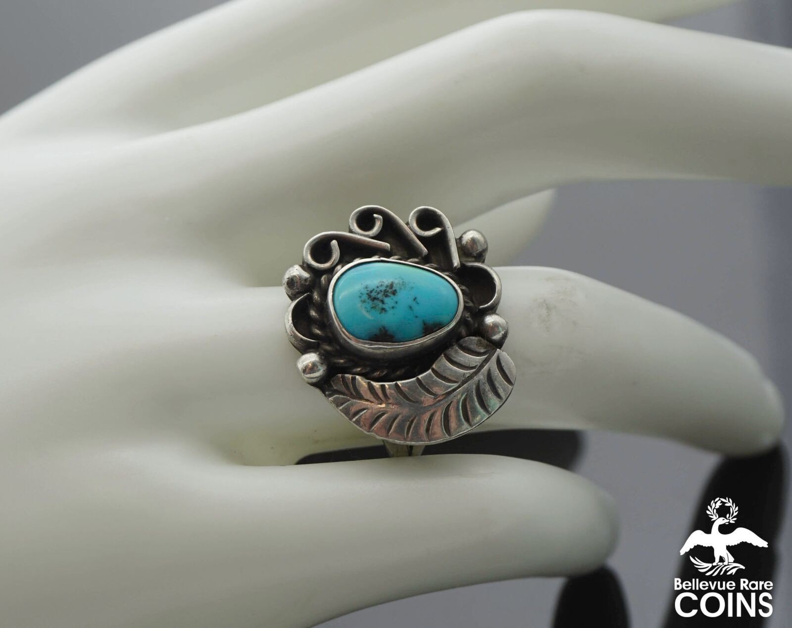 как выглядит Vintage Southwestern Silver Turquoise Floral Ring фото