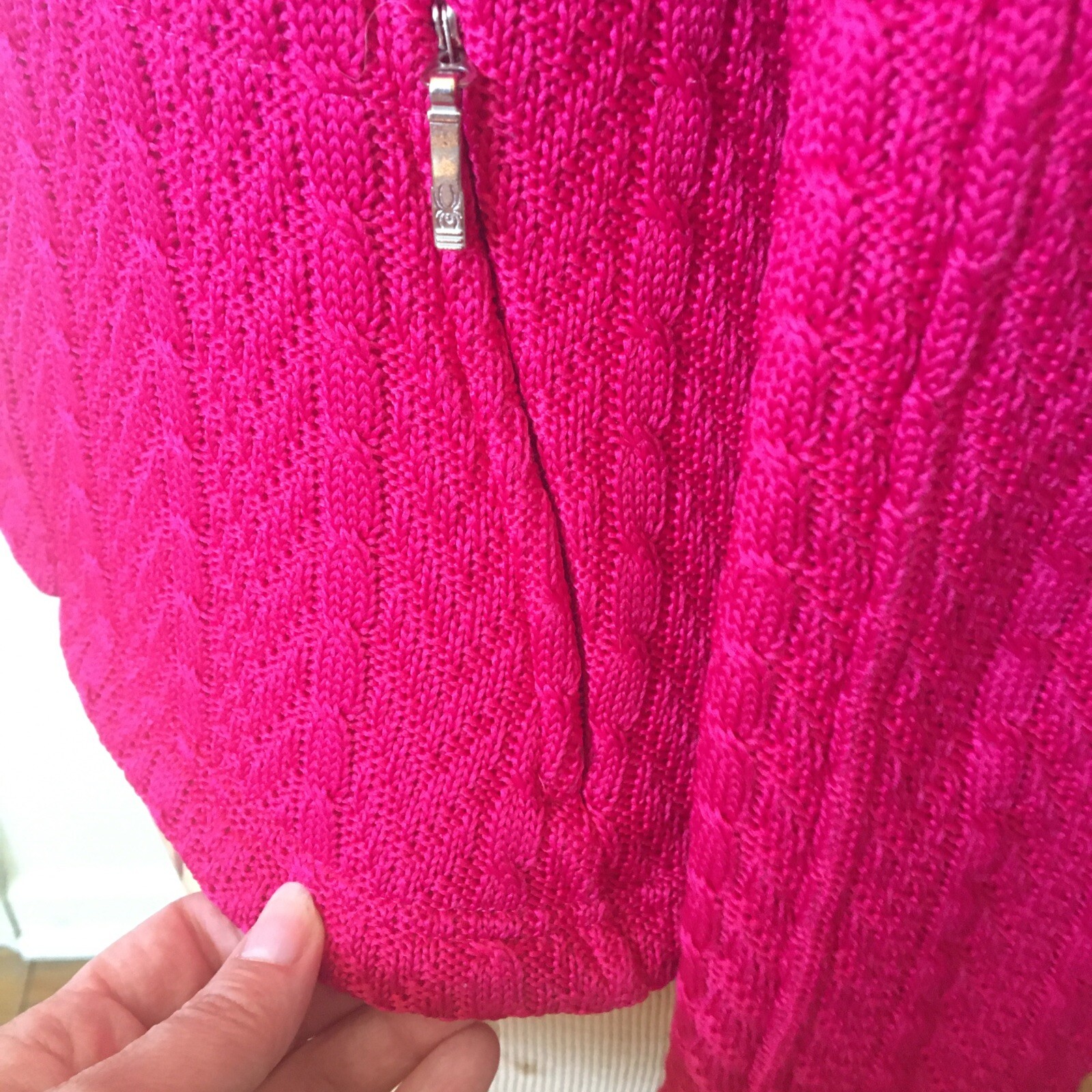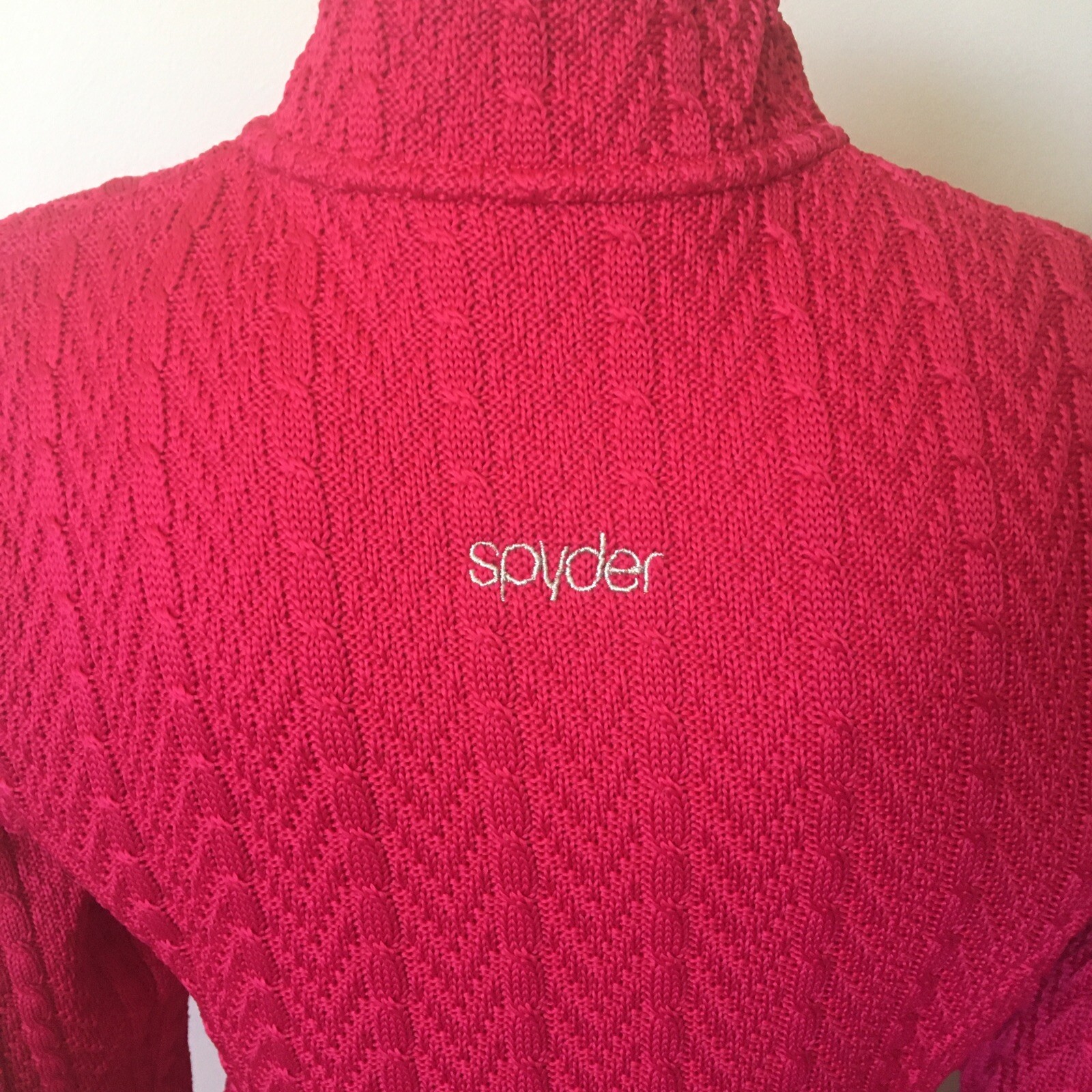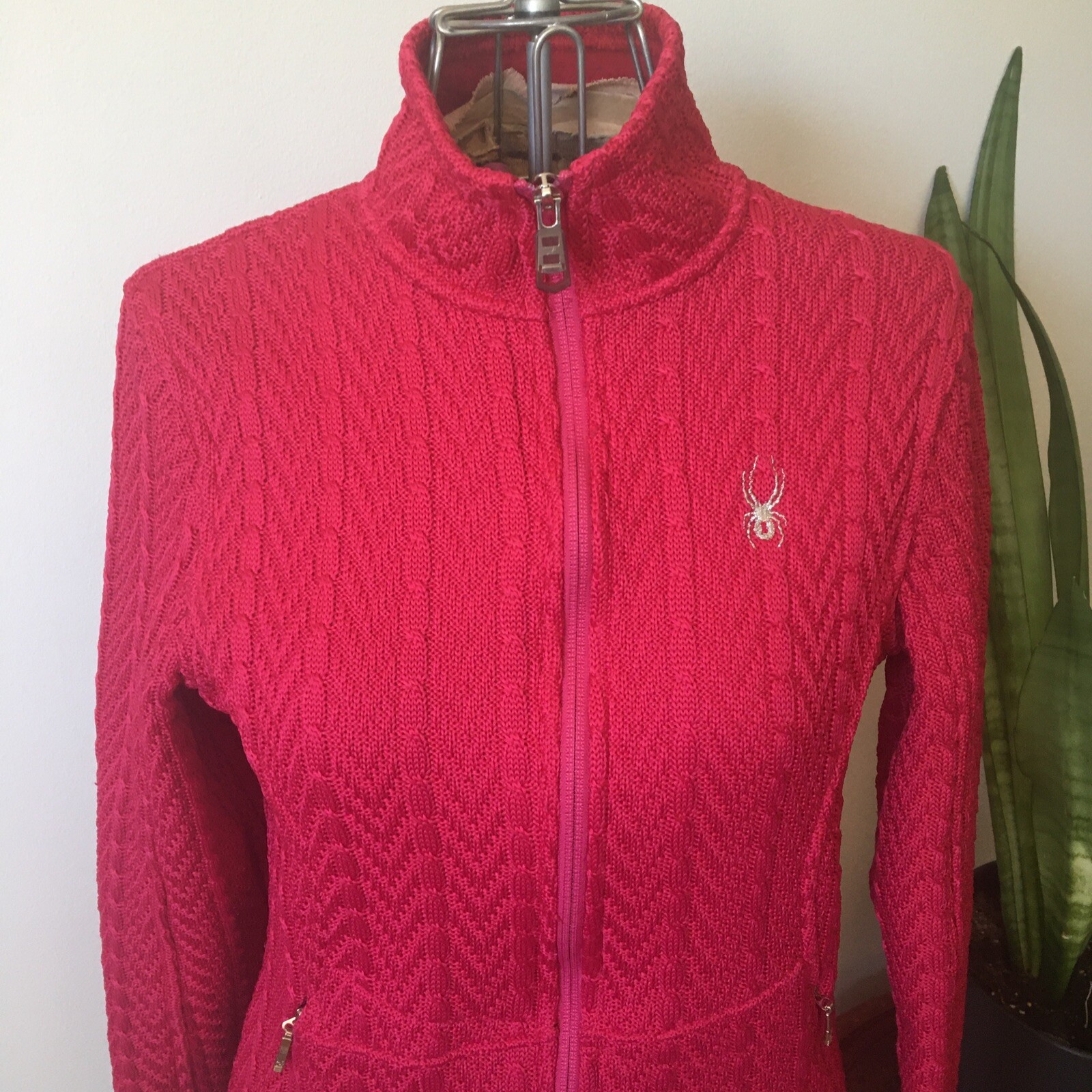 как выглядит Spyder Raspberry Pink Cable Knit Jacket XS Full Zip Logo Zip Pockets фото