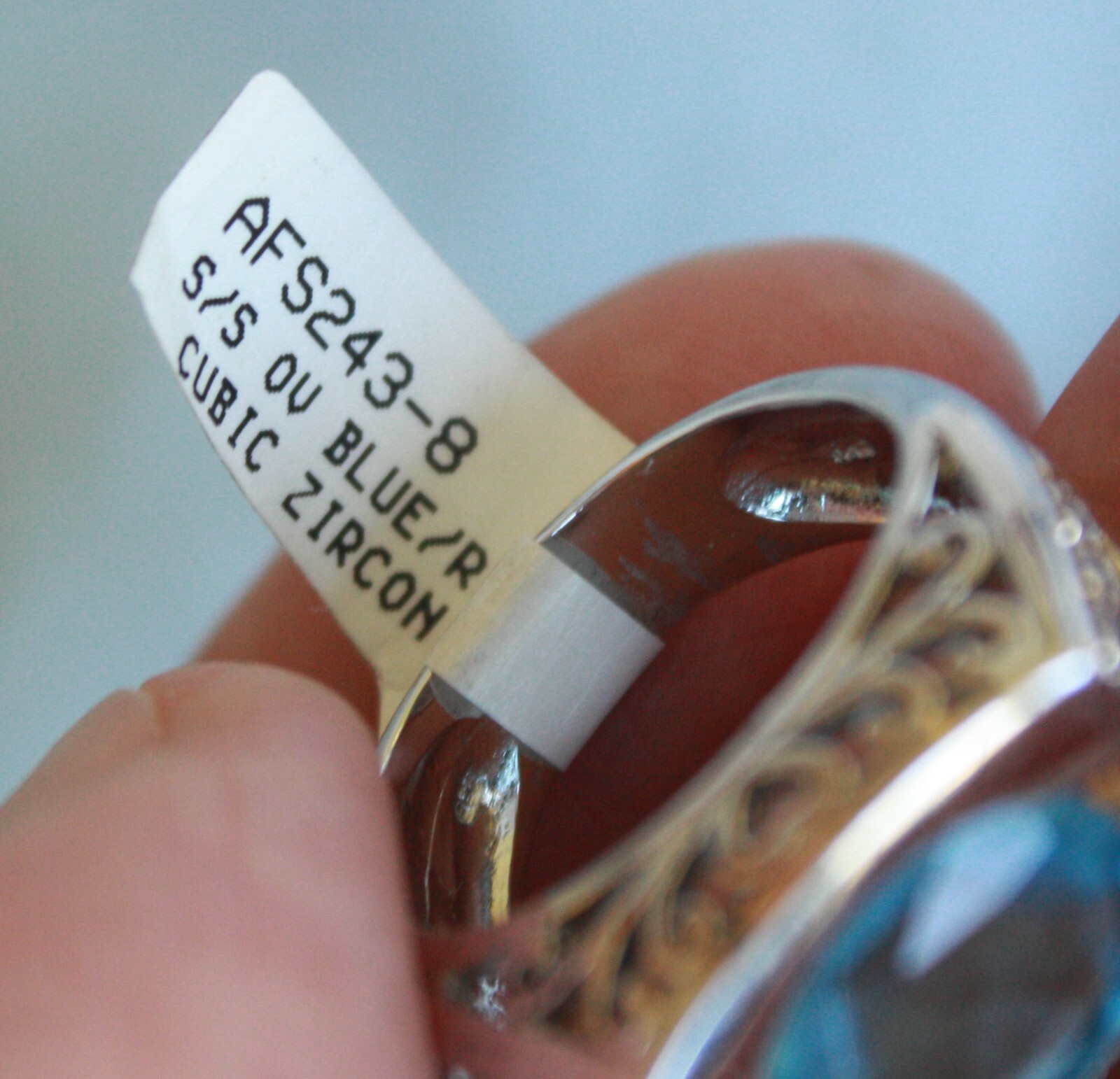 как выглядит New Sterling Silver 925 Ornate Ring Blue Stone White CZ Size 8 NWT фото