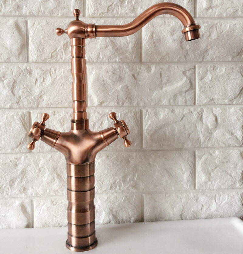 Antique Red Copper Bathroom Kitchen Bar Vessel Sink Swivel Faucet Tap srg055